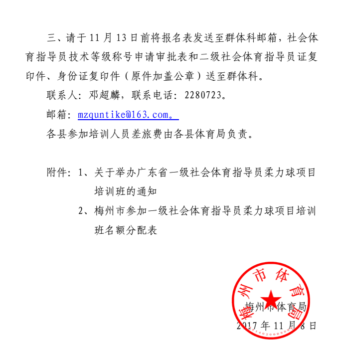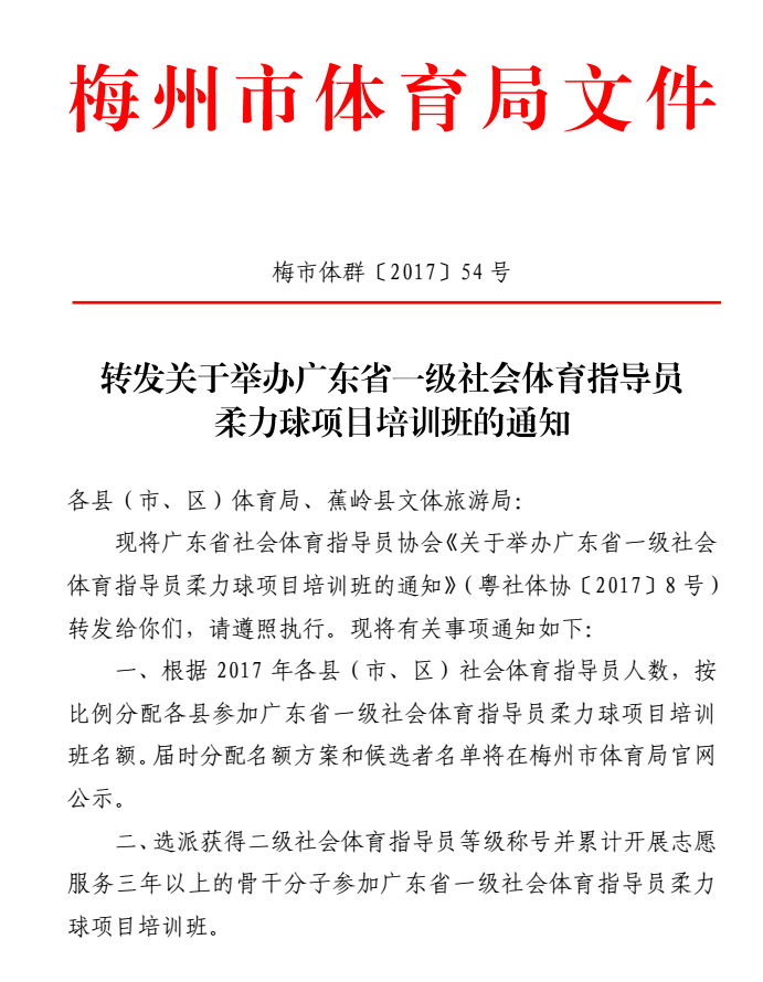 梅州市人民政府門戶網站 梅州市體育局 通知公告 轉發關於舉辦廣東省一級社會體育指導員柔力球項目培訓班的通知