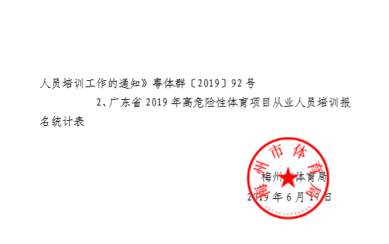 梅州市人民政府門戶網站 梅州市體育局 通知公告 關於做好2019年廣東省高危險性體育項目從業人員培訓工作的通知