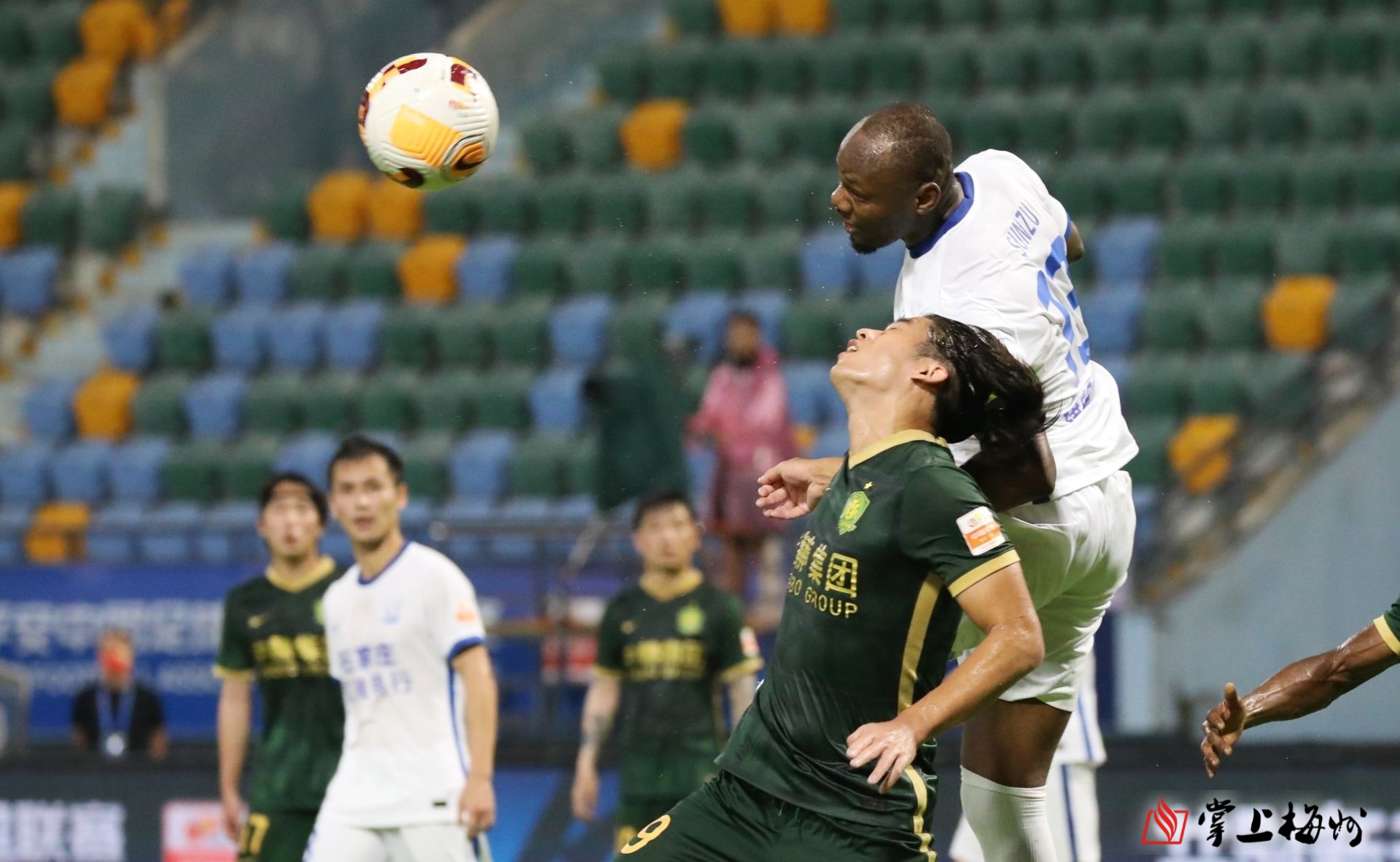 北京國安隊球員阿德本羅與對手拚搶