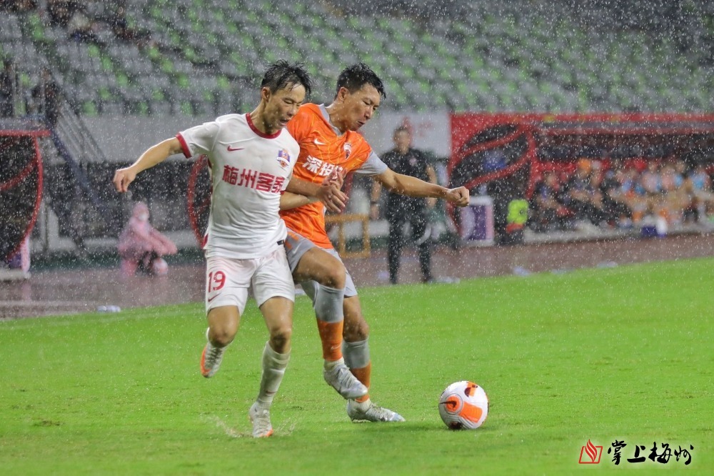 下半場比賽剛開始,賽場風雲突變,天空下起大雨,這對於打法以地麵配合為主的梅州客家不利。第50分鍾,深圳隊張源遠射造成侯宇撲球脫手,亞曆山德裏尼補射將比分扳平。梅州客家不甘平局,米蘭接連做出換人調整,先後將尹鴻博、陳國抗和楊一虎派上場,加強球隊攻勢。比賽尾聲階段,梅州客家全線壓上,全力爭取比賽勝利。補時最後階段,陳國抗分到禁區外弧頂處,科索維奇一腳遠射破門完成絕殺,最終梅州客家2:1戰勝深圳隊,在贏下廣東德比的同時,也收獲中超首場勝利。