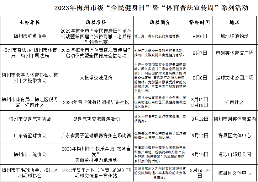 梅州市人民政府門戶網站 梅州市體育局 體育動態 迎接第十五個“全民健身日”,梅州體育活動不停歇!