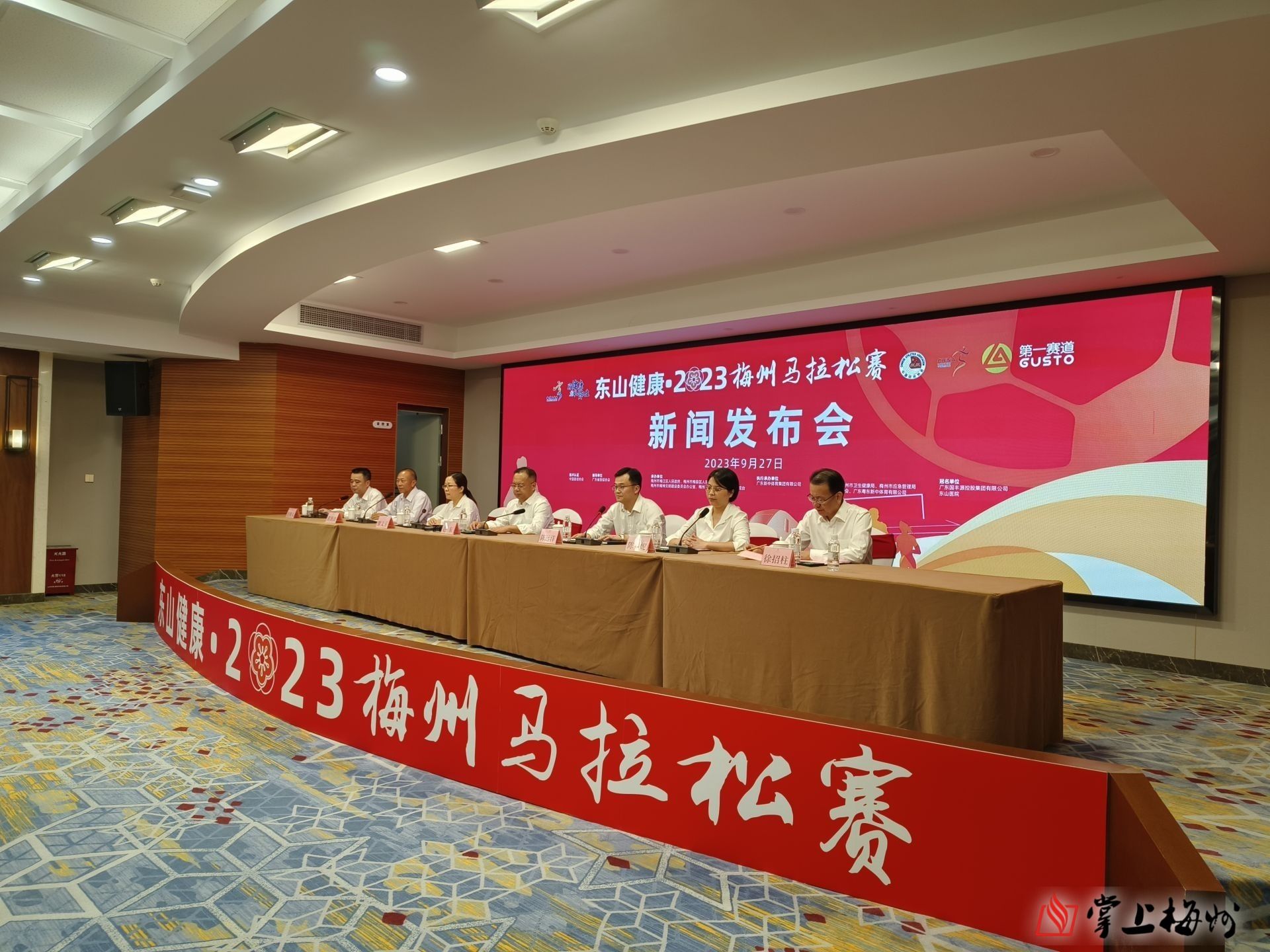 9月27日下午,東山健康·2023梅州馬拉鬆賽新聞發布會舉行,介紹賽事籌備情況和獎牌、參賽服等設計元素。市委常委、副市長趙東,市委宣傳部常務副部長梁放,市體育局局長陳遠洋,梅江區委常委、宣傳部部長廖文玉,梅縣區副區長陳春妮等出席了發布會。