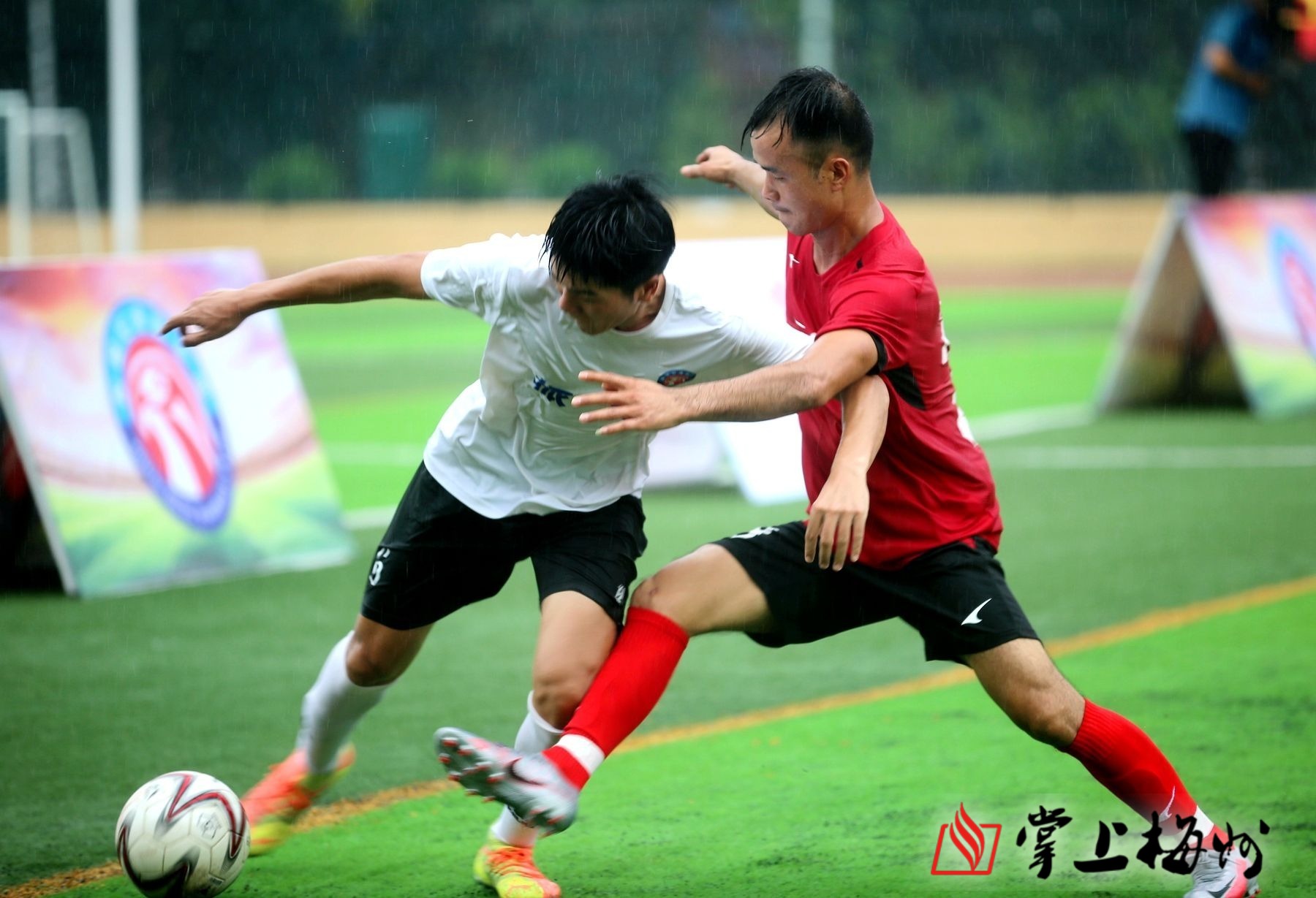 大戰打響,梅江振城首先發難,頻頻向對方施壓。五華美好文化一點也不懼對手,同樣也組織起幾次像樣的進攻,勢均力敵,一場好戲拉開序幕。