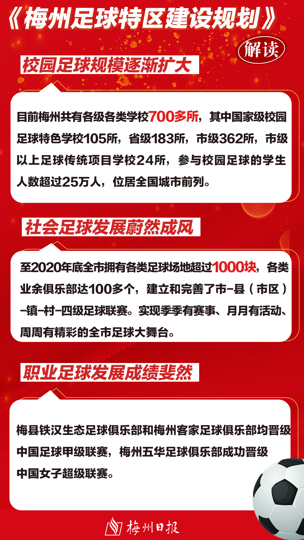 記者獲悉,24日,市政府印發《梅州足球特區建設規劃》(以下簡稱《規劃》),為加快創建梅州足球特區、全麵提升梅州城市足球發展整體水平提供了指引。