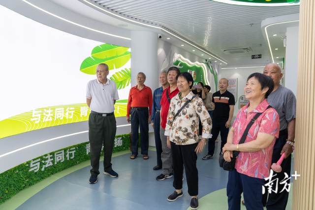 軍休所全體工作人員和軍休幹部乘車來到梅江區向陽樹青少年法治教育基地。邀請律師現場開展普法講座,圍繞民法典和《中華人民共和國老年人權益保障法》等與軍休老幹部切實相關的條文案例,以案說法,係統深入地進行分析講解,加深軍休幹部對相關法律法規的認知,營造了學法、懂法、守法、用法的良好法治軍休氛圍。講座結束後,大家一起參觀了梅江區向陽樹青少年法治教育基地,通過講解員的講解和展廳中的演播廳、模擬法庭、答題機等體驗項目,“沉浸式”學習了法律知識,“零距離”感受了一場生動的法治教育之旅。