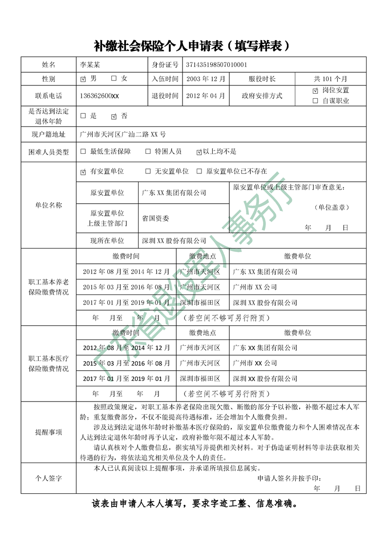 梅州市人民政府門戶網站 梅州市退役軍人事務局 通知公告 補繳社會保險個人申請表