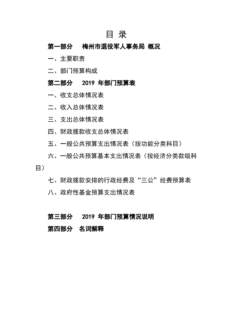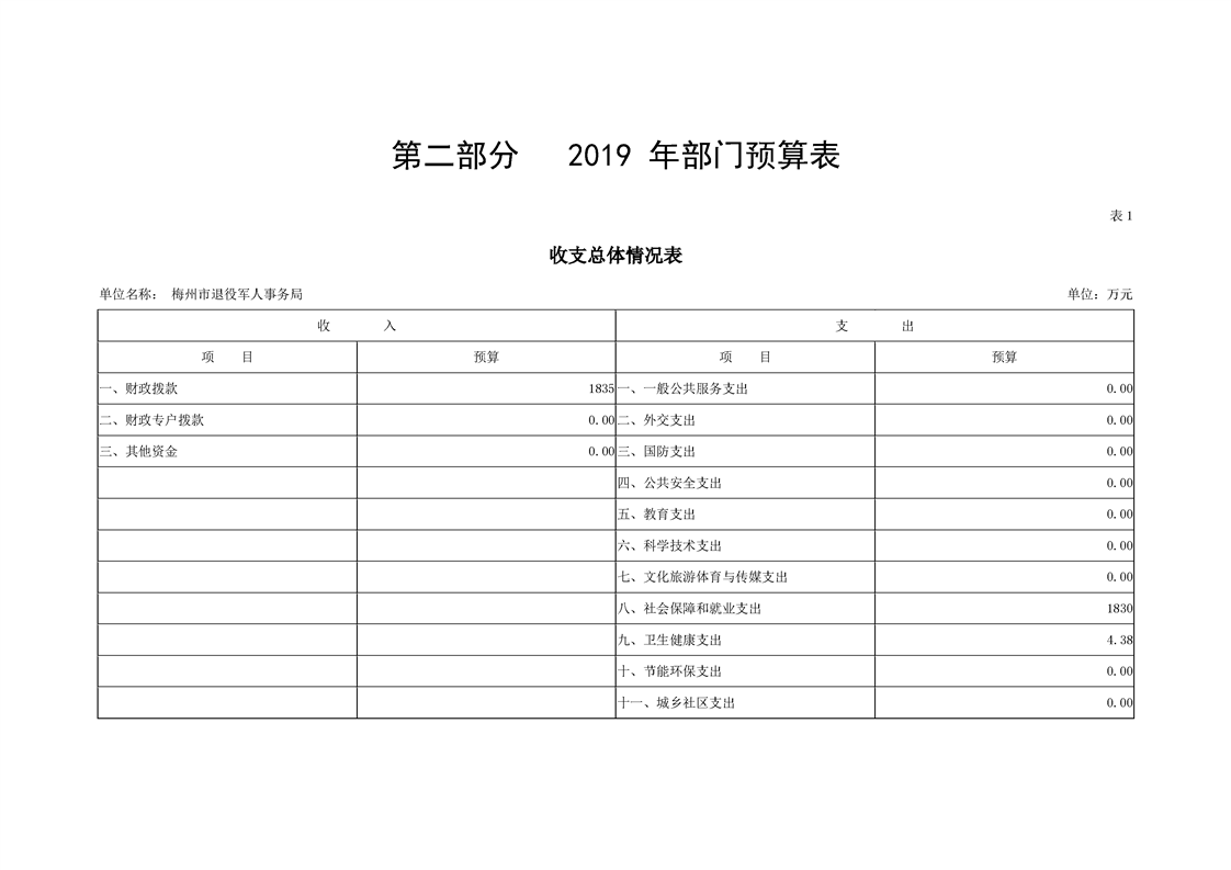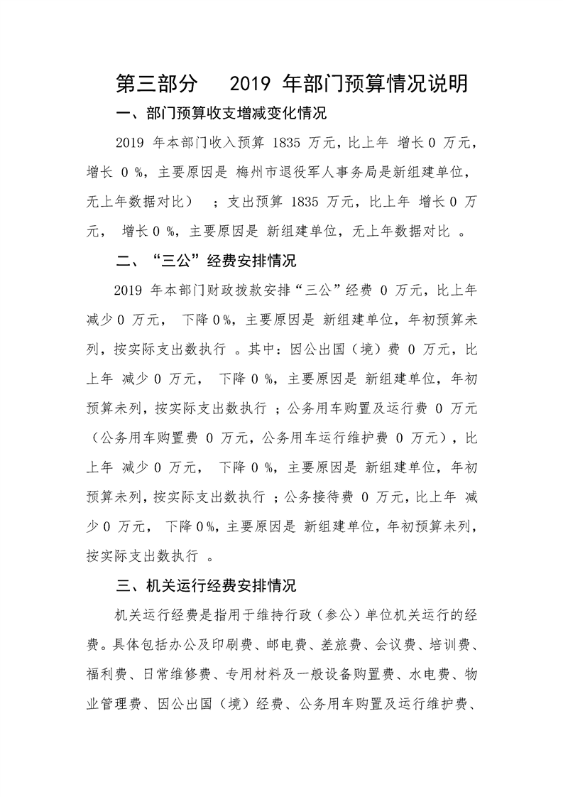梅州市人民政府門戶網站 梅州市退役軍人事務局 部門預決算和三公經費預決算 梅州市退役軍人事務局2019年部門預算
