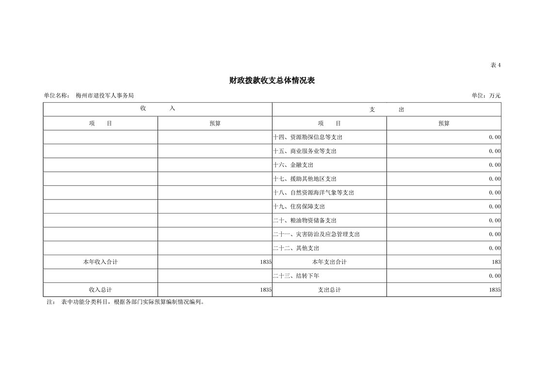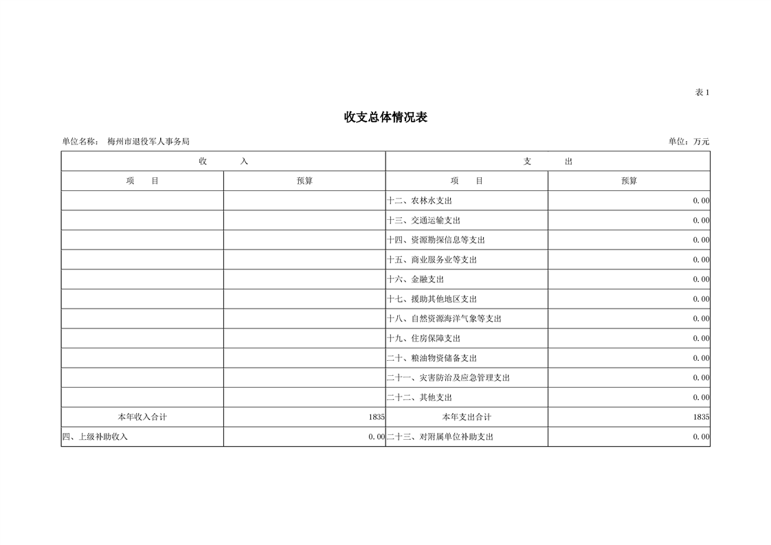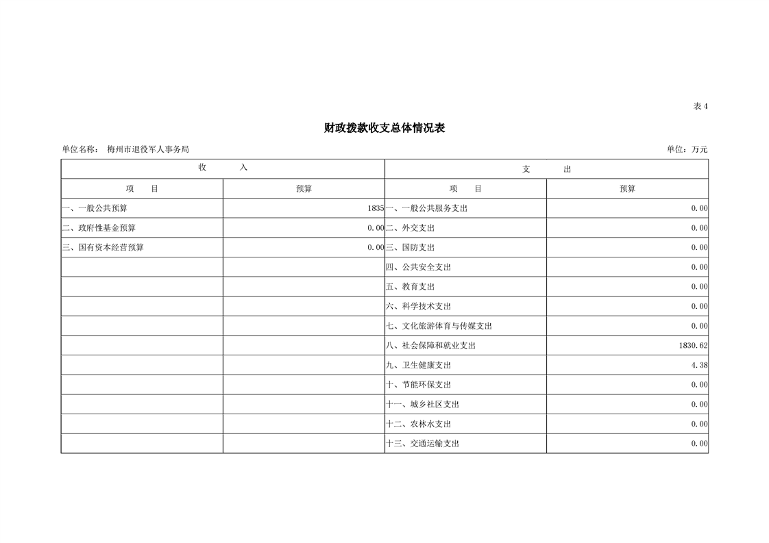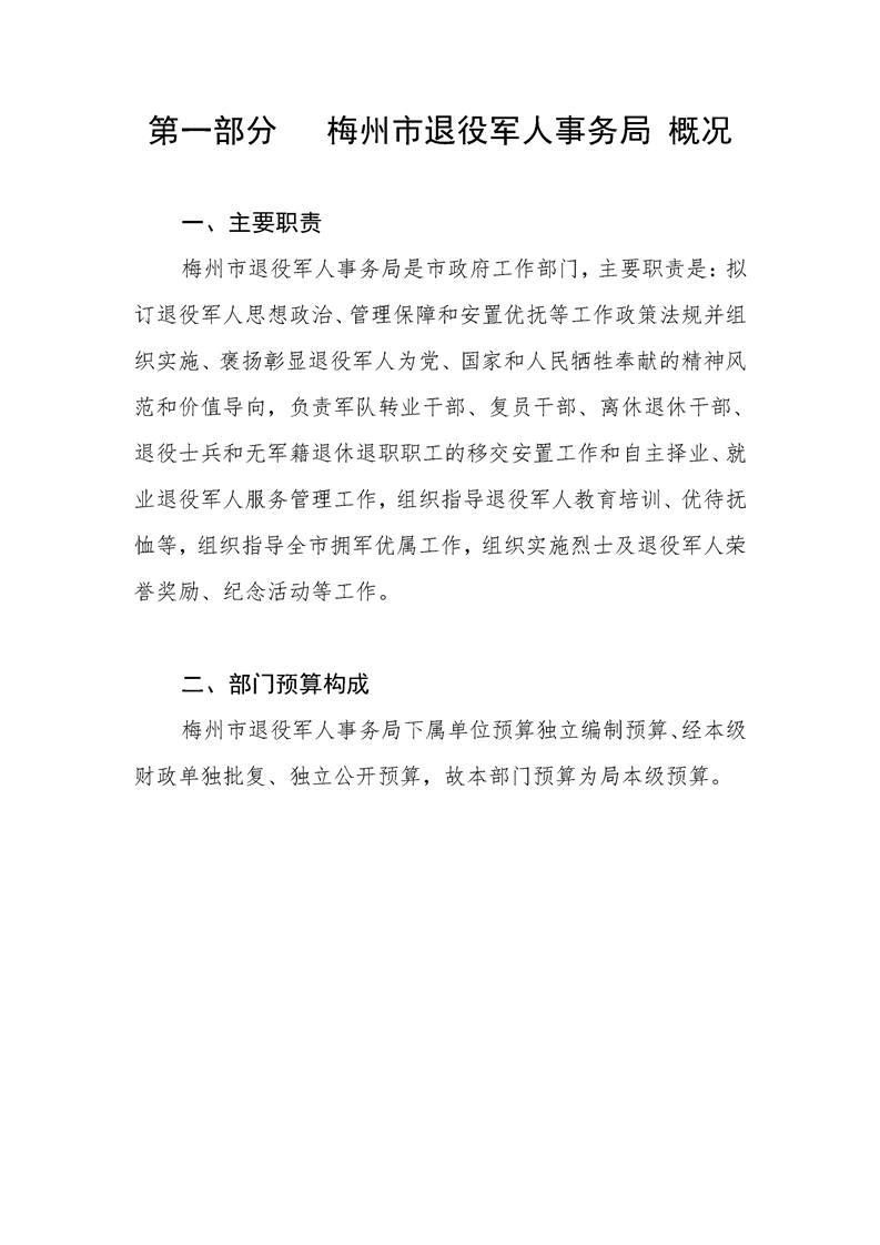 梅州市人民政府門戶網站 梅州市退役軍人事務局 部門預決算和三公經費預決算 梅州市退役軍人事務局2019年部門預算