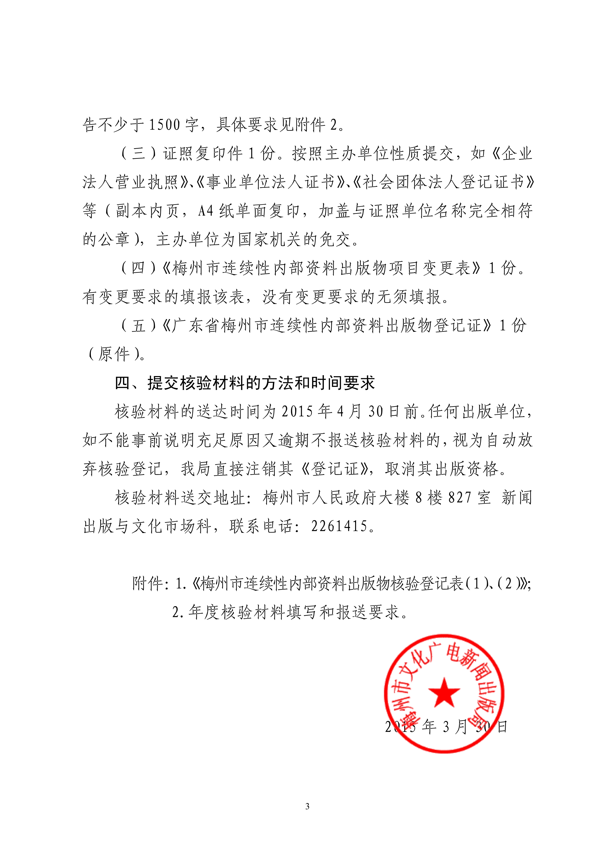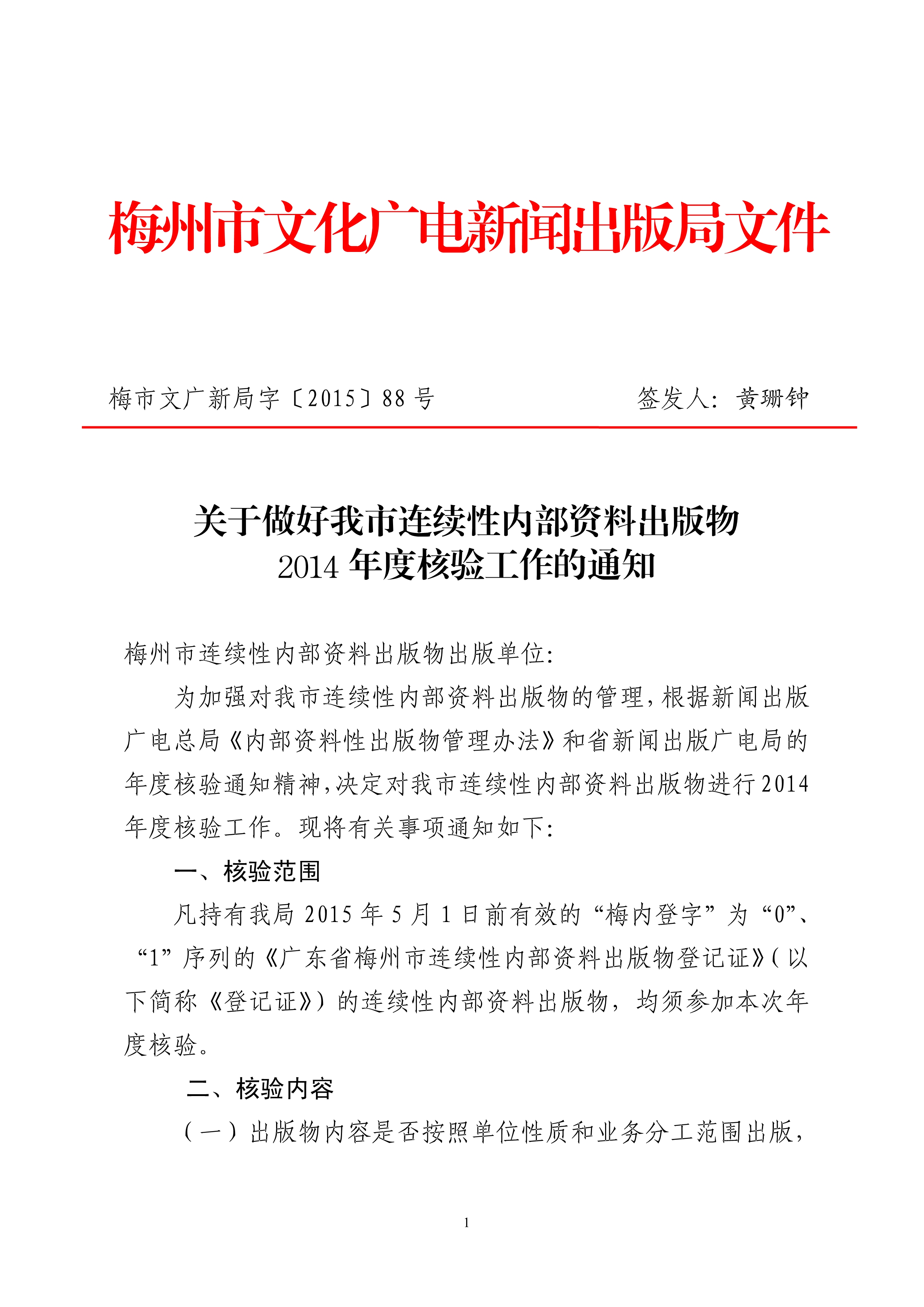 梅州市人民政府門戶網站 梅州市文化廣電旅遊局 部門文件 關於做好我市連續性內部資料出版物2014年度核驗工作的通知