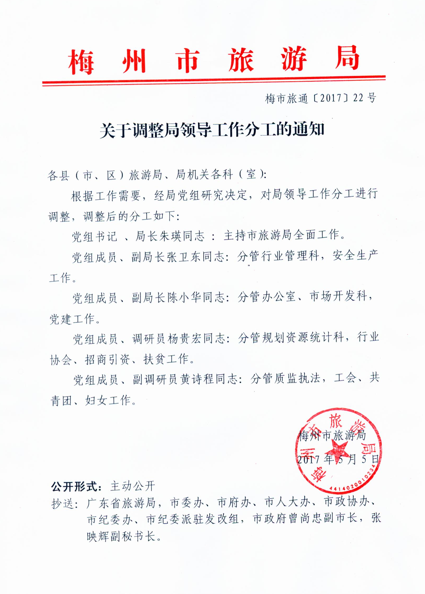 梅州市人民政府門戶網站 梅州市文化廣電旅遊局 部門文件 關於調整局領導工作分工的通知