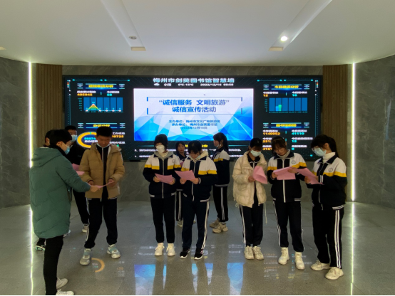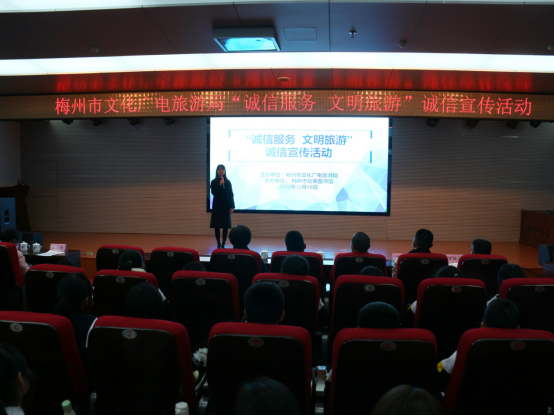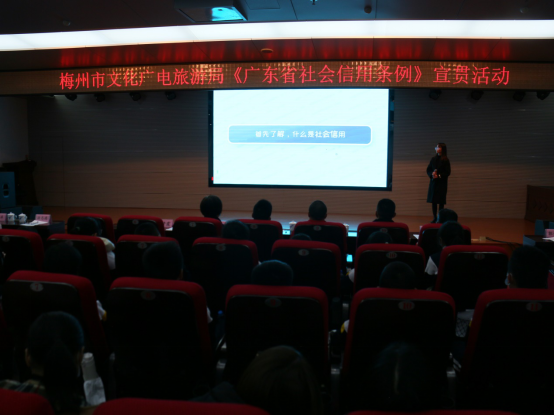 為進一步擴大社會公眾對社會信用體係建設工作的知曉率,全麵提升社會誠信意識,梅州市文化廣電旅遊局於12月16日在梅州市劍英圖書館舉辦了《廣東省社會信用條例》宣貫活動和“誠信服務 文明旅遊”誠信宣傳活動,市民群眾約100人參加活動。