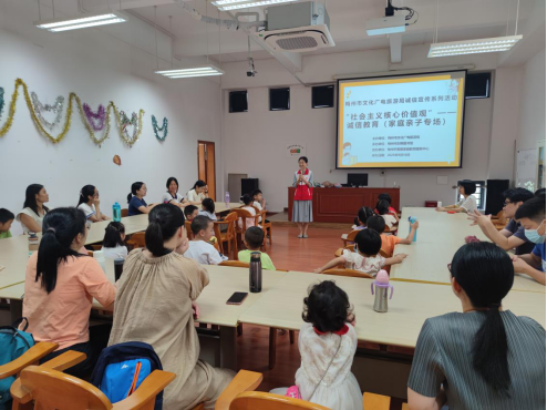 為加強我市誠信宣傳工作,進一步營造誠實守信的良好社會環境,梅州市文化廣電旅遊局於9月10日在梅州市劍英圖書館舉辦了“社會主義核心價值觀”——誠信教育(家庭親子專場)活動,20組4-6周歲親子家庭參加活動。