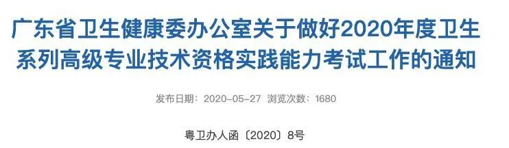 近日,廣東省衛生健康委辦公室印發《關於做好2020年度衛生係列高級專業技術資格實踐能力考試工作的通知》(以下簡稱《通知》)。