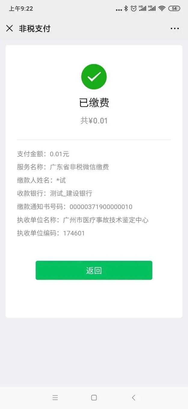 六、成功支付後,點擊“返回”,可以看到支付結果。