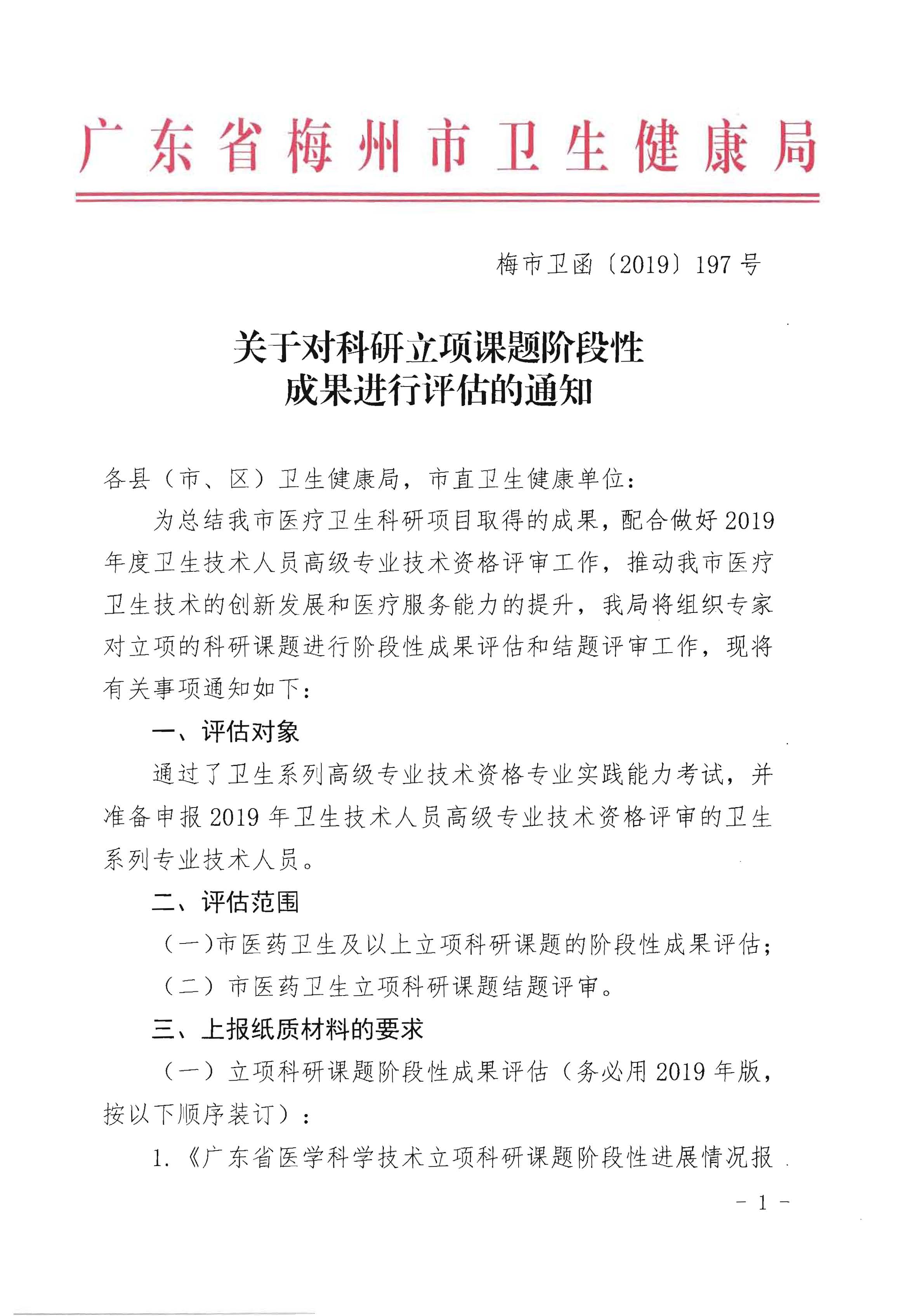 梅州市人民政府門戶網站 梅州市衛生健康局 下載專區 關於對科研立項課題階段性成果進行評估的通知