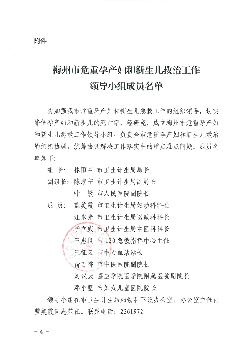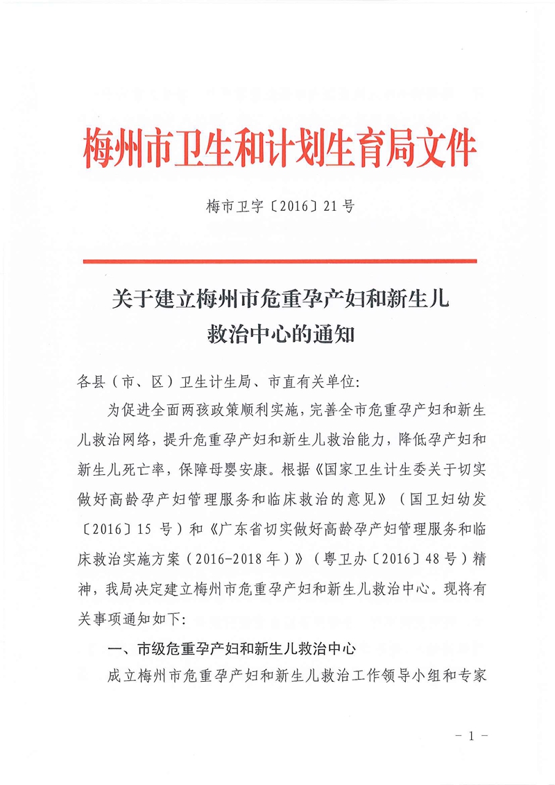 梅州市人民政府門戶網站 梅州市衛生健康局 政策文件 關於建立梅州市危重孕產婦和新生兒救治中心的通知