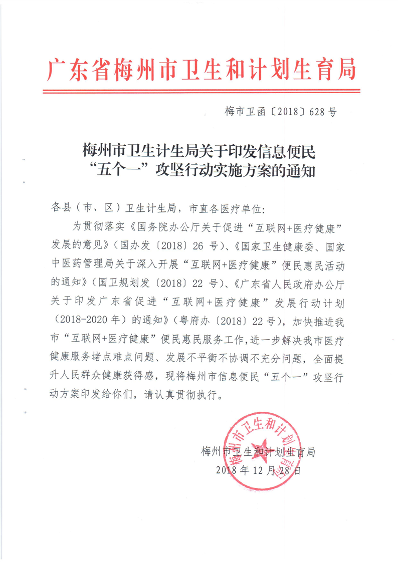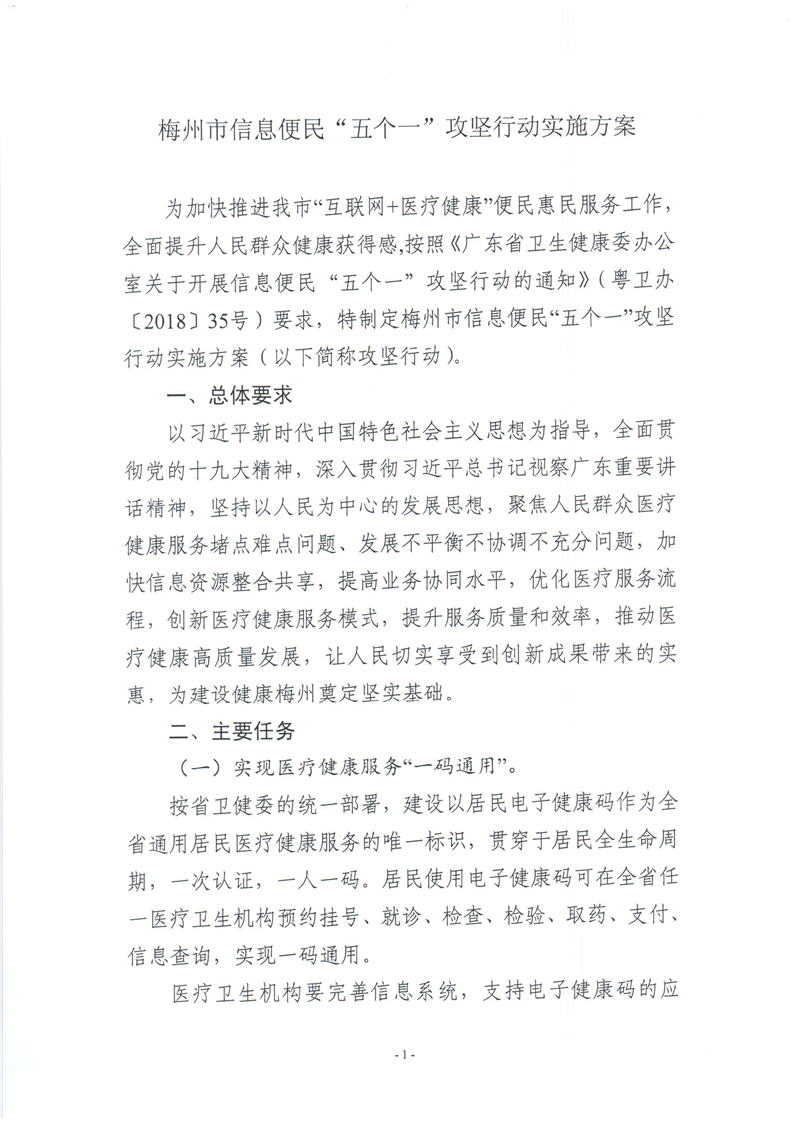 梅州市人民政府門戶網站 梅州市衛生健康局 政策文件 梅州市衛計局關於印發信息便民“五個一”攻堅行動實施方案的通知