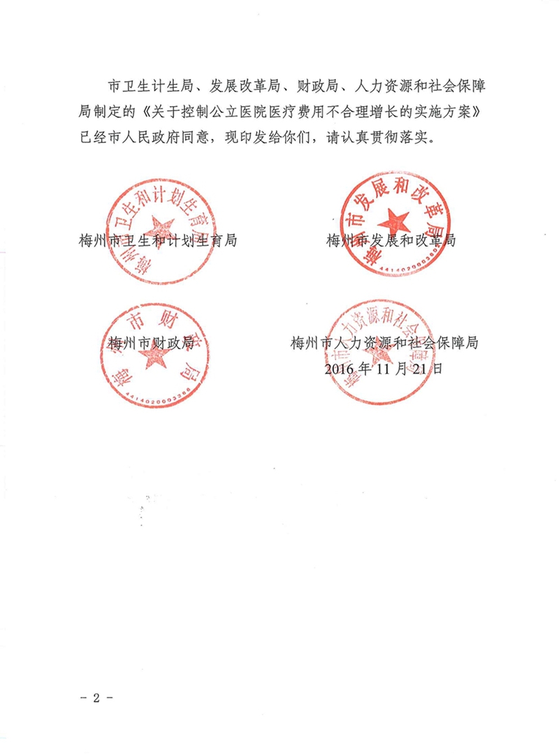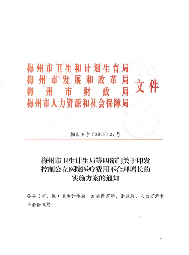 梅州市人民政府門戶網站 梅州市衛生健康局 政策文件 梅州市衛生計生局等四部門關於印發控製公立醫院醫療費用不合理增長的實施方案的通知