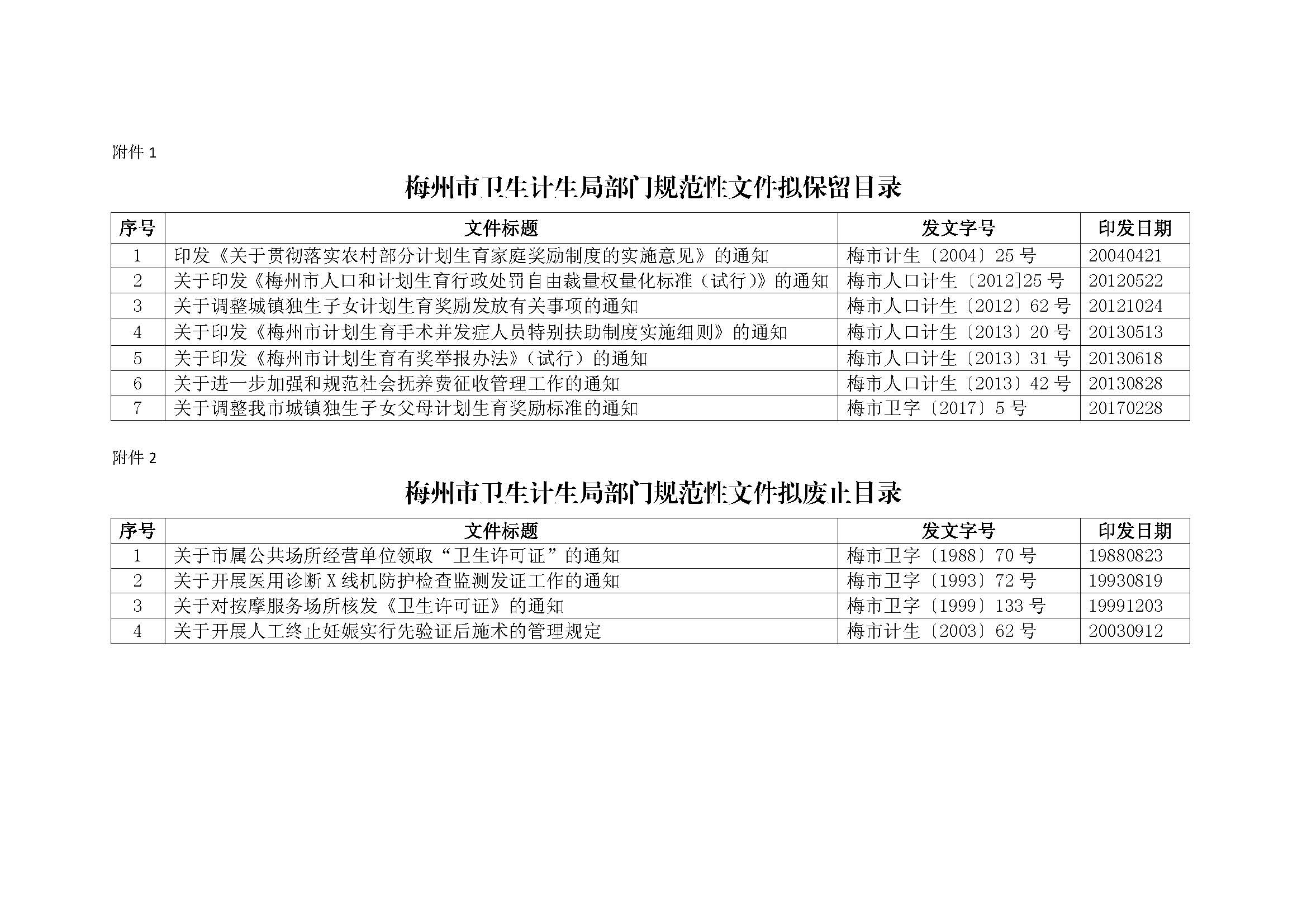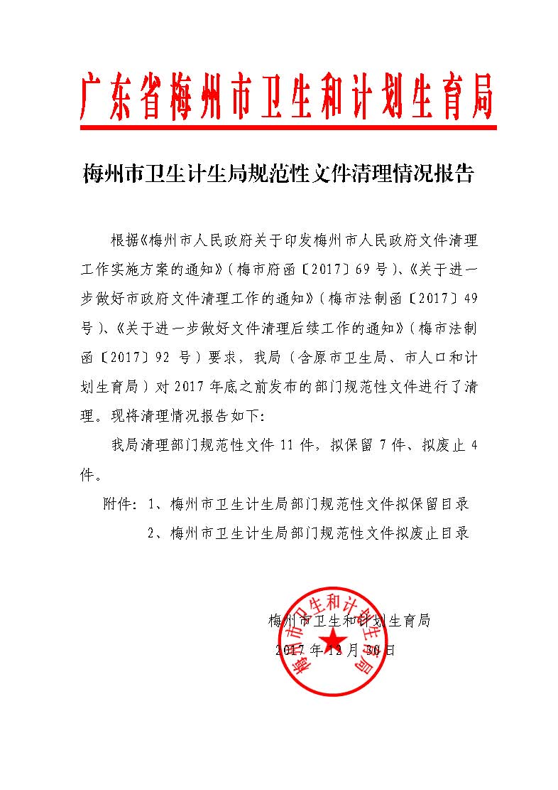 梅州市人民政府門戶網站 梅州市衛生健康局 政策文件 梅州市衛生計生局規範性文件清理情況報告
