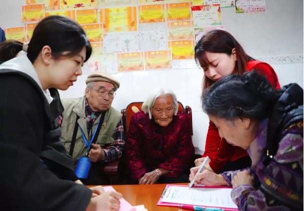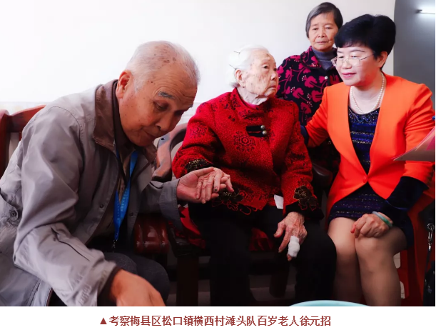 ▲拜訪梅江區西陽鎮秀竹村拜訪百歲老人何國可