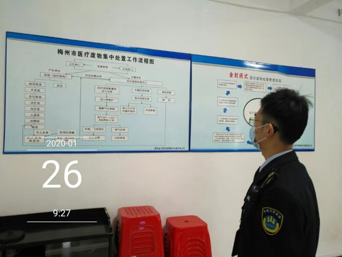 醫療垃圾處理公司是集中處理醫院生產出的汙染性垃圾的單位。如果處理不當,不僅造成環境汙染,而且會成為疫情流行的源頭。根據《廣東省衛生健康委辦公室關於進一步加強防控新型冠狀病毒感染的肺炎期間衛生監督工作的通知》(粵衛辦監督函〔2020〕3號)的要求,為加強醫療廢物收集、運輸、處理中衛生監督工作,防止二次汙染,有效保障從業人員的身體健康。2020年1月26日上午,梅州市衛監所聯合興寧市衛監所、疾控中心對梅州金川醫療廢物集中處置有限公司進行檢查指導。