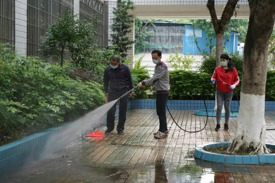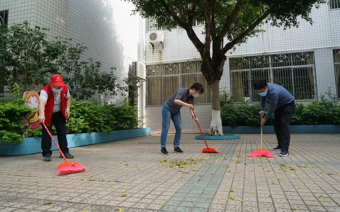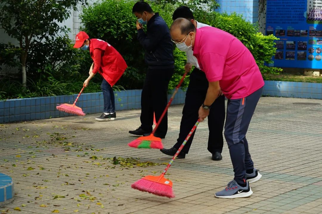 啟動儀式後,梅州市、梅江區政府及衛健局、市文明辦、使生態環境局、市住房和城鄉建設局等愛衛會成員單位領導同誌走進校園開展環境衛生清潔大掃除行動,環衛工人及消殺人員同步在其他區域進行環境衛生整治和消殺作業。
