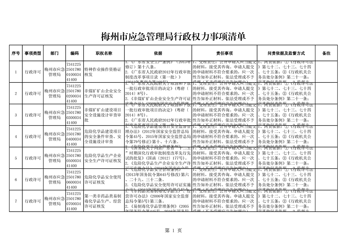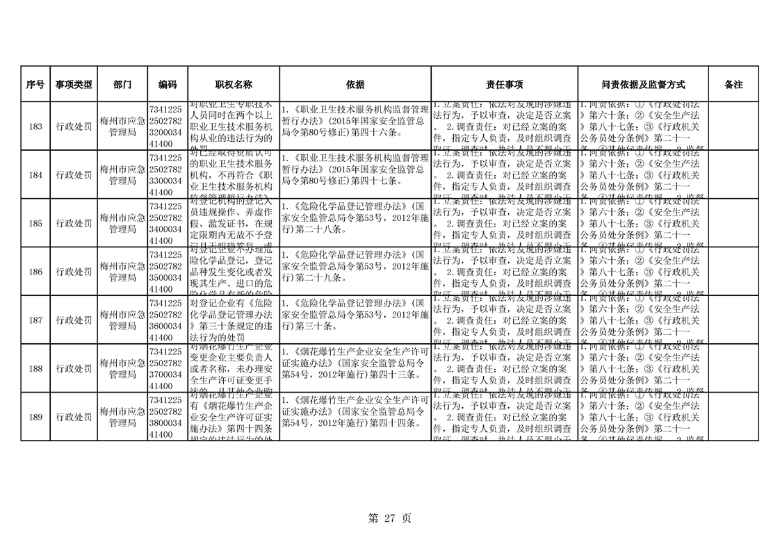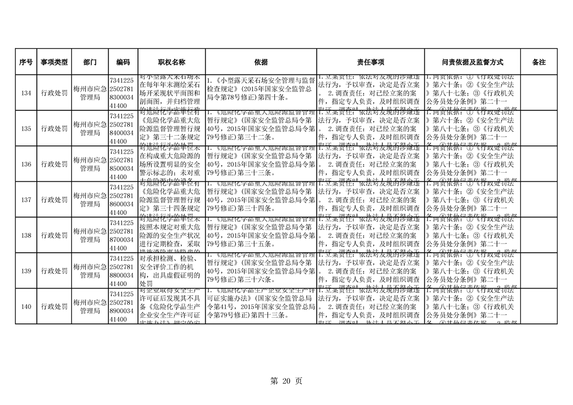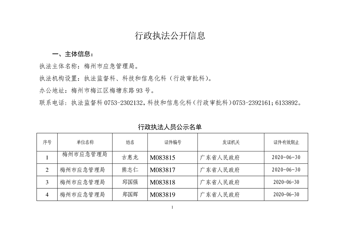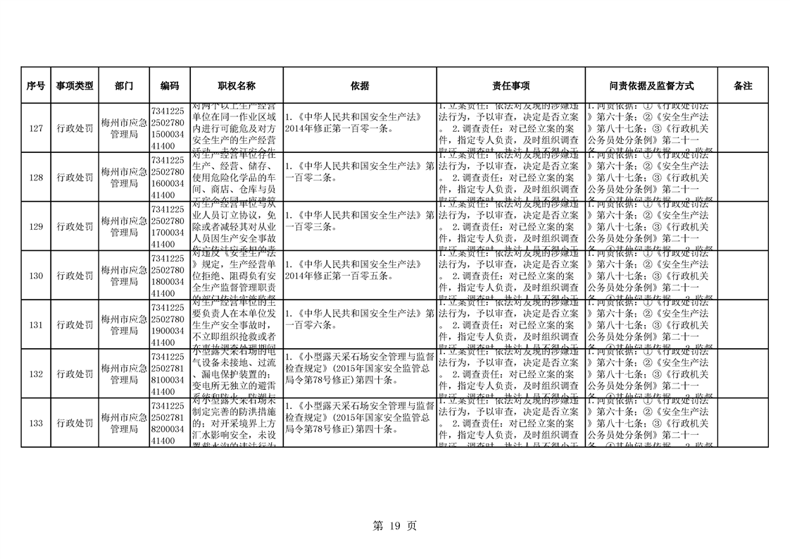 梅州市人民政府門戶網站 梅州市應急管理局 重點領域信息公開 2019年行政執法公開信息