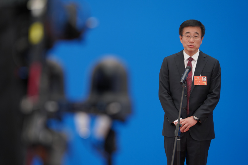 5月21日,在北京人民大會堂新聞發布廳舉行的全國政協十三屆三次會議第一場“委員通道”采訪活動上,全國政協委員王辰通過網絡視頻方式接受媒體采訪。新華社記者 劉金海 攝