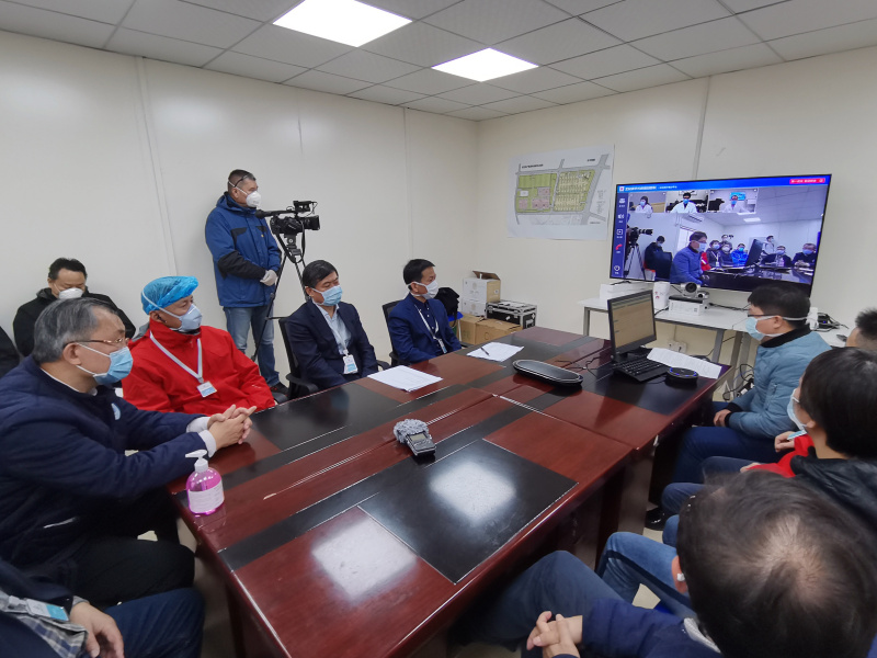 在5G、醫療雲平台等技術支持下,新冠肺炎多學科移動遠程會診國家醫療隊項目實現了“前方臨床救治,後方多學科遠程支持”的診療模式。這是2月27日在武漢雷神山醫院拍攝的遠程多學科會診現場(手機拍攝)。新華社發(高翔 攝)