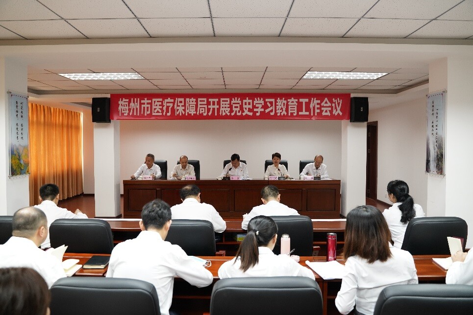 2021年6月16日上午,市醫療保障局在局機關六樓會議室召開全體黨員幹部參加的黨史學習教育工作會議,市委黨史學習教育第七巡回指導組李訓組長、張順星副組長及其他成員到場指導。