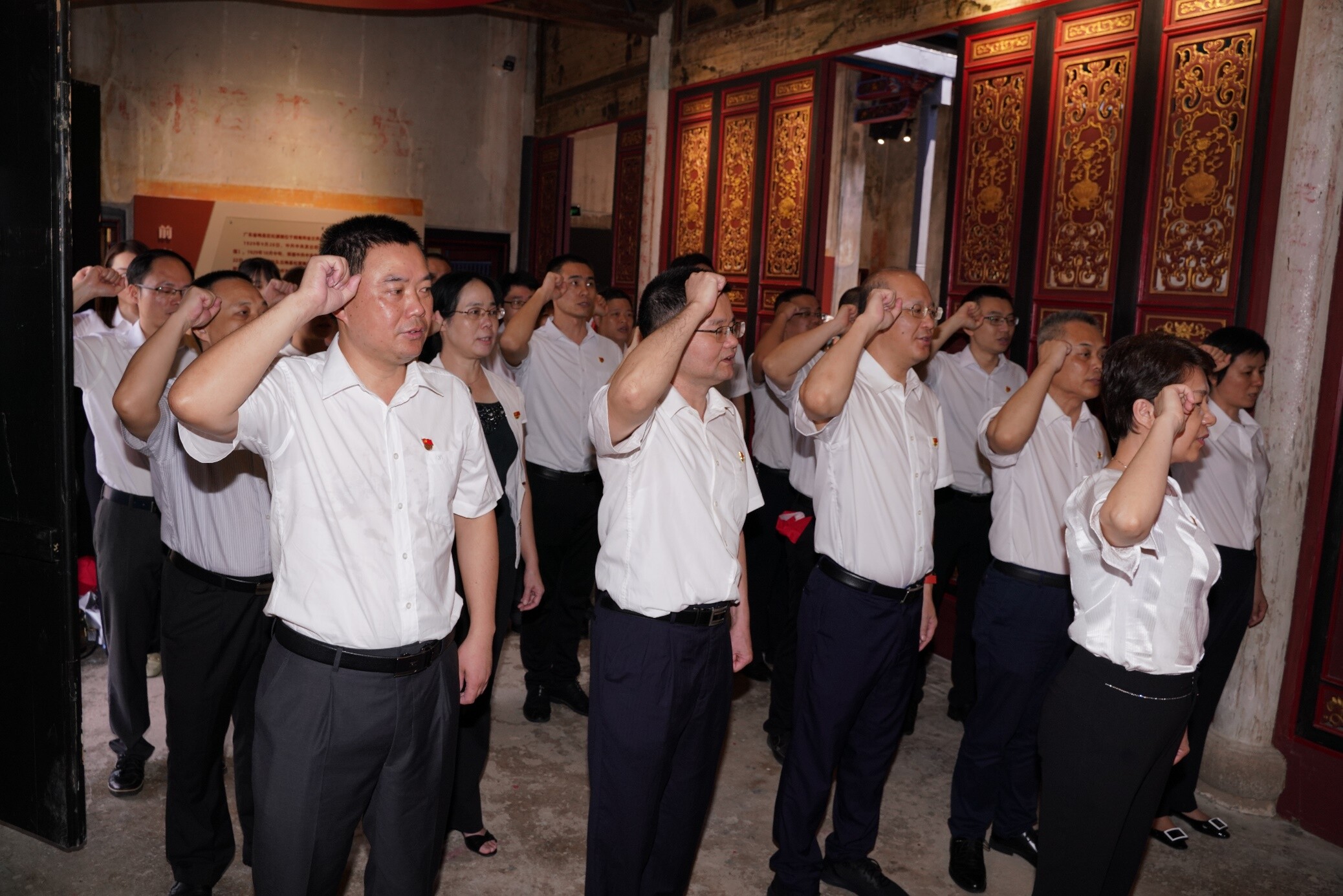 在鬆源鎮同懷別墅革命教育基地,蔡雪嫦同誌帶領全體黨員重溫了入黨誓詞,追憶了“中央九月來信”那段動人的紅色往事,還前往鬆源鎮革命曆史展覽館參觀學習。