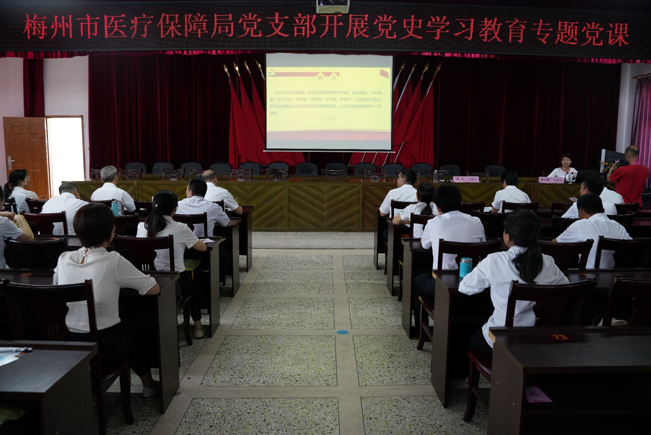 活動期間,蔡雪嫦同誌為全體黨員上了一堂題為《銘記黨史 學深悟透 汲取力量 全力推動梅州醫保事業高質量發展》的專題黨課,從銘記黨史,旗幟鮮明講政治、凝心聚力顧大局,從緊從嚴守紀律,勇於擔當抓落實四個方麵,將鮮活的史實從曆史和現實的維度進行了重溫和解讀。