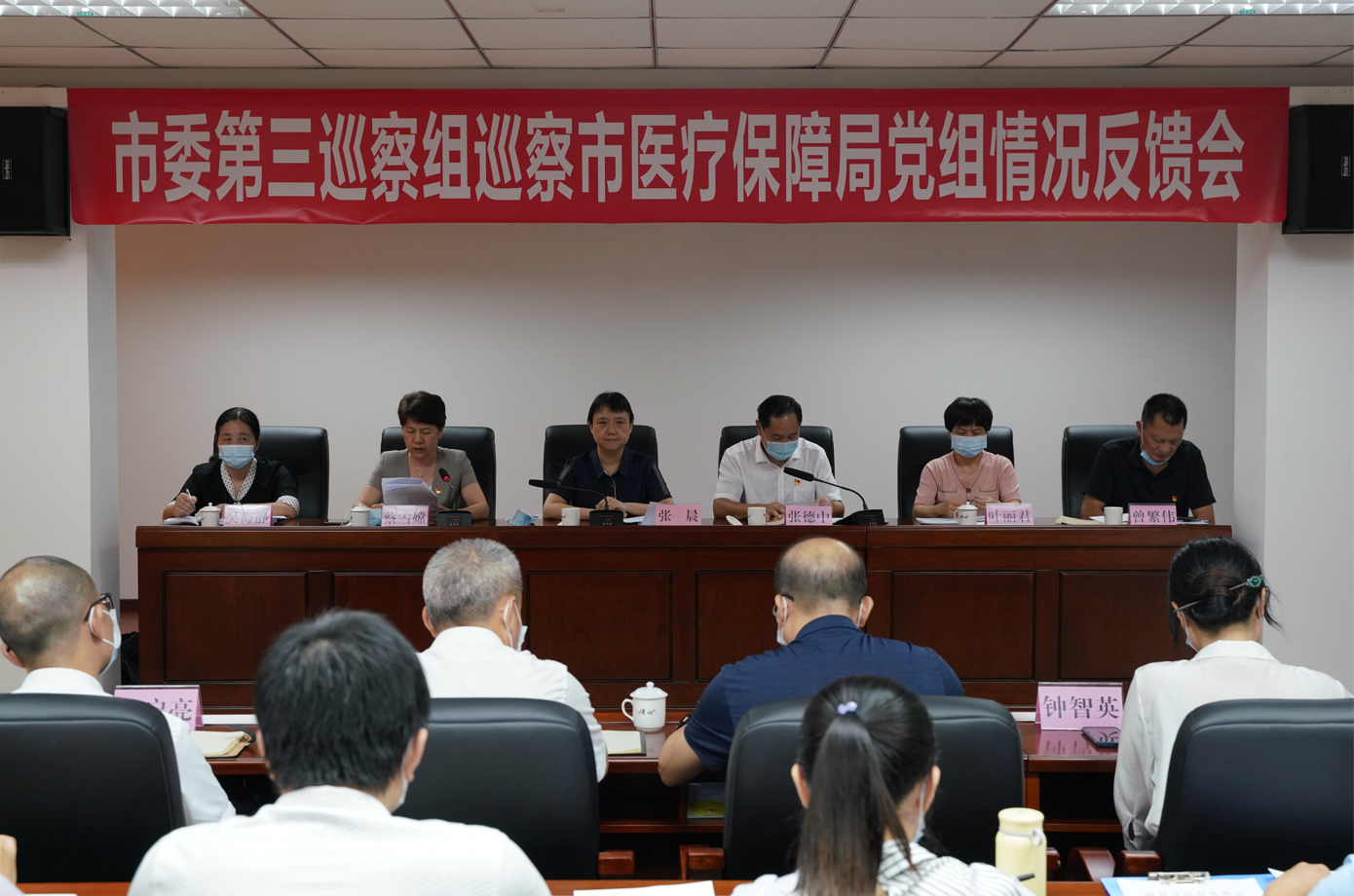 根據市委巡察工作領導小組的部署,2021年8月18日下午,市委第三巡察組巡察市醫療保障局黨組情況反饋會召開。副市長張晨傳達市委書記陳敏同誌在聽取七屆市委第九輪巡察情況彙報會上的講話精神,對市醫療保障局落實巡察整改提出要求。市委第三巡察組組長張德中反饋巡察情況,對抓好巡察整改工作提出具體意見。市醫療保障局黨組書記、局長蔡雪嫦主持會議並作表態發言。市委巡察辦副主任葉麗君、市委第三巡察組副組長吳海靜、市紀委監委駐市衛生健康局紀檢監察組組長曾繁偉,市委第三巡察組有關同誌,市醫療保障局和下屬單位全體幹部職工等參加會議。
