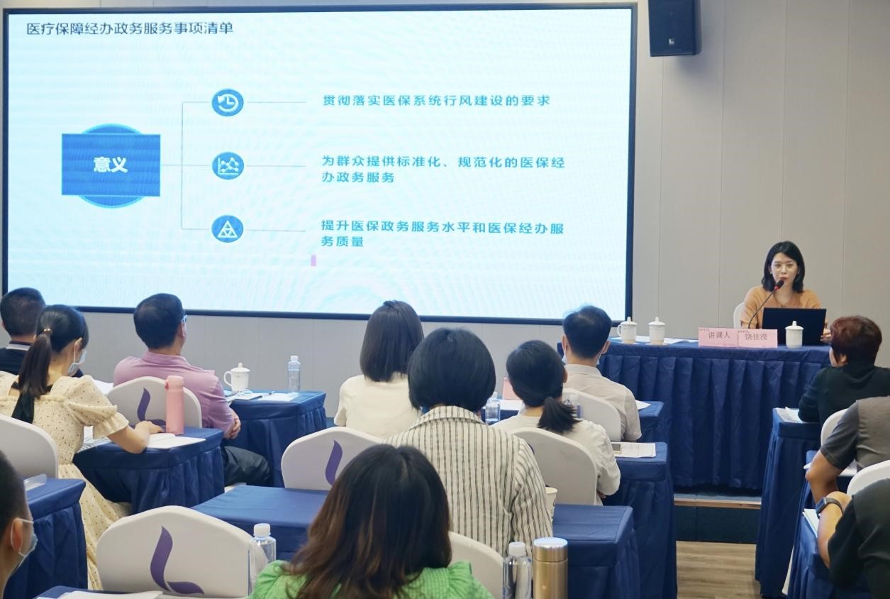 培訓班針對當前一些經辦人員政策掌握不充分、經辦經驗不足、溝通服務不到位等問題,設計了專門的課程,既有醫保政策熱點問題的解讀,又有亚博网址链接 事項清單中前後台、線上、醫療救助業務的係統講解,還有窗口服務工作人員禮儀和溝通技巧的現場演練。授課老師深入淺出、通俗易懂地講解,與會人員認真聽講、詳細記錄,大家紛紛表示此次培訓很及時、很到位,解決了一些經辦業務工作中的疑惑,進一步梳理了各業務經辦流程要點和政策依據,充實了醫保經辦規範工作。
