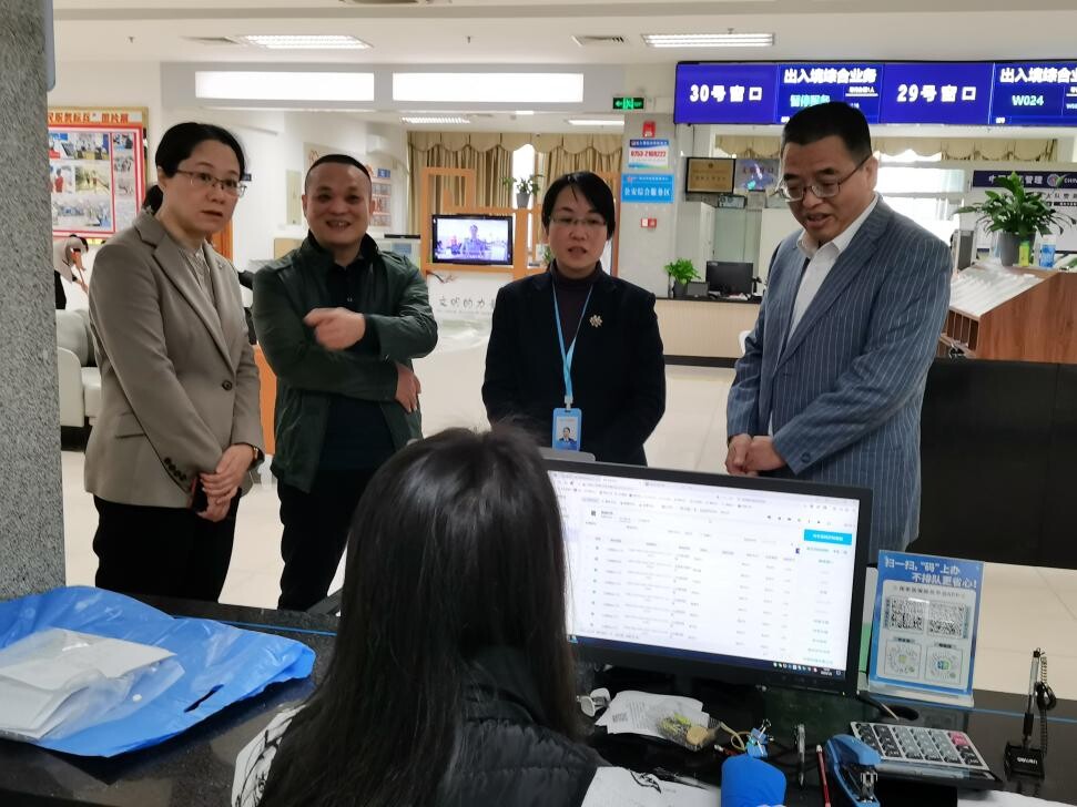薛興冰與窗口工作人員親切交談,仔細詢問元旦節日前後窗口工作情況,了解窗口工作困難並提出指導意見,對窗口人員的積極工作狀態和熱情暖心服務點讚。