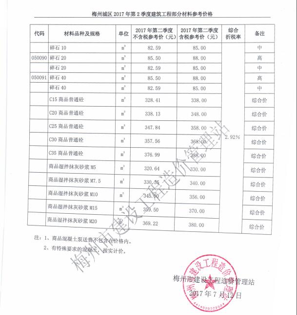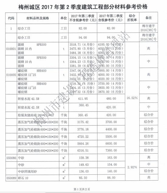 梅州市人民政府門戶網站 梅州市住房和城鄉建設局 建築業管理 梅州城區2017年第2季度建築工程部分材料參考價格