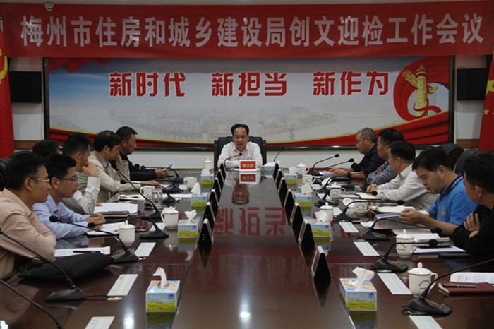 根據市委市政府的創文工作部署,從11月初到12月底我市將進入創文迎檢年度衝刺階段,為做好迎檢工作,使迎檢工作有序進行,我局於2019年11月7日上午9時在局二樓召開梅州市住房和城鄉建設局創文迎檢工作會議,參會的主要有我局黨組書記謝又新同誌和其他班子成員,梅江區、梅縣區住建局,市環衛局及市局各科室、直屬單位主要負責人,會議由周耀坤副局長主持。