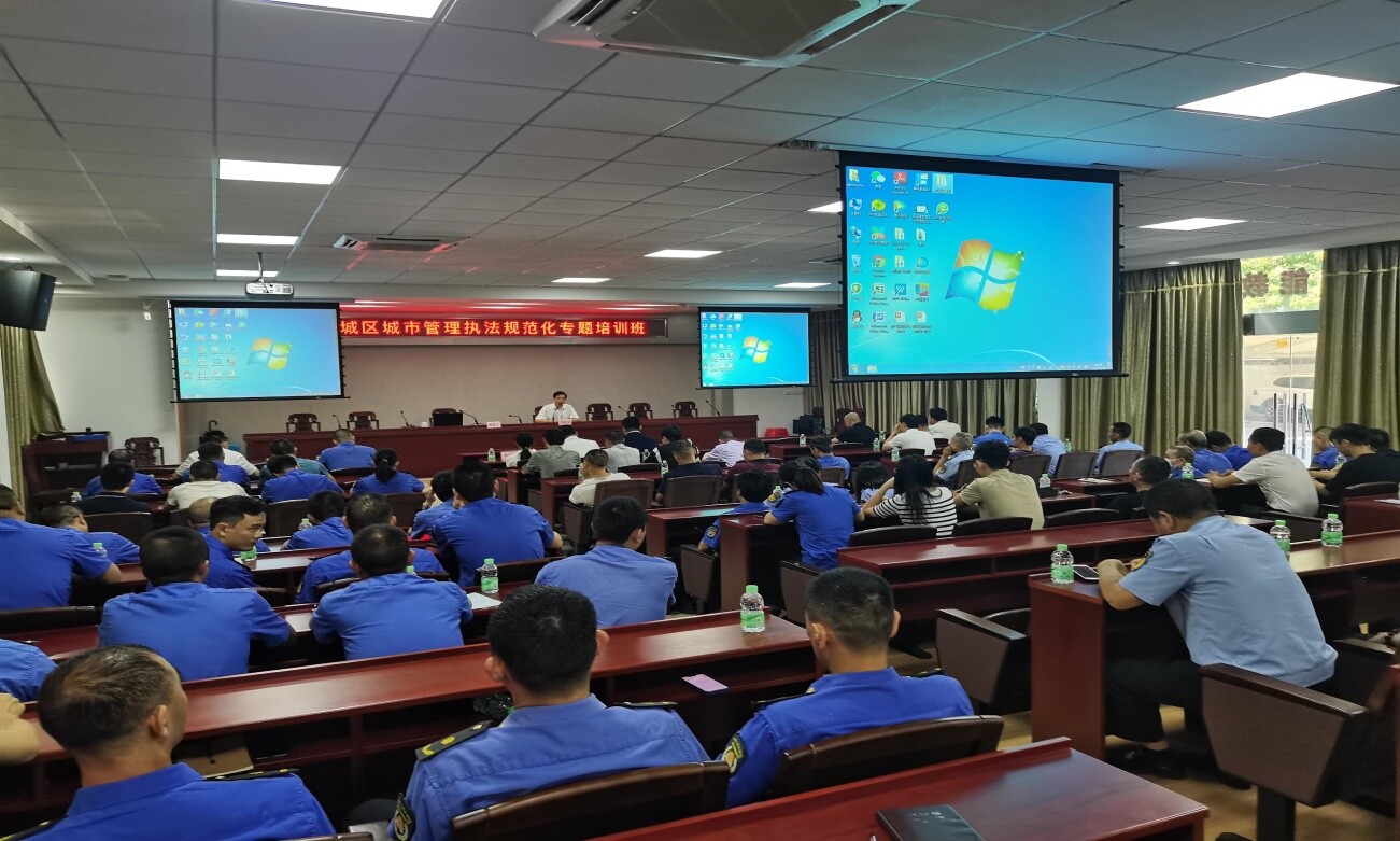 為深入學習貫徹習近平法治思想,認真落實市委、市政府關於加強城市管理和綜合執法工作要求,5月30日上午,市住建局舉辦梅州城區城市管理執法規範化專題培訓班。受市住建局黨組書記、局長李宏同誌的委托,此次培訓由市住建局黨組成員、副局長、三級高級主辦朱煥明同誌主持並作開班動員講話,梅縣區和梅江區住建局分管城市管理綜合執法領導及相關股(室)負責同誌,梅江區各鎮(街)分管城市管理綜合執法領導及相關人員近90人參加了培訓。