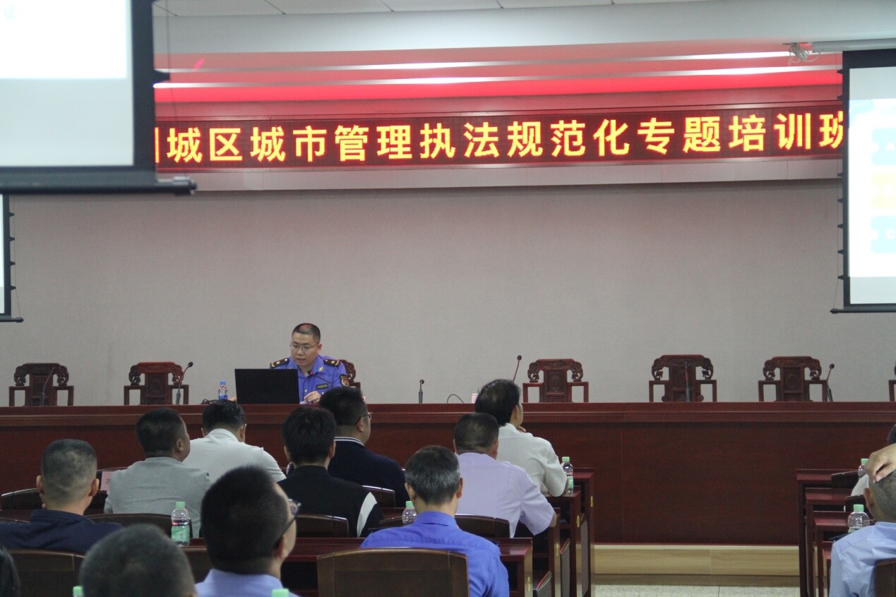 最後,朱煥明副局長強調,城市管理執法工作者要熱愛執法工作崗位,樹立“身在城管心在執法”的思想,堅持人民至上,增強業務本領,開創我市城市管理執法工作新局麵。一要講政治勇擔當。城市管理執法工作是代表政府行使城市管理的具體行動,牢牢把握正確政治方向,持續加強理論學習,不斷提高政治判斷力、政治領悟力、政治執行力。堅決貫徹落實市委、市政府的決策部署,從為民辦實事入手,解決群眾關注的“熱點”“難點”問題,推動嚴格規範公正文明執法。二要勤學習熟業務。要學習掌握城市建設管理方麵的業務知識,打牢執法基礎;要學習鑽研城市管理執法相關的法律法規,夯實執法根基;要不斷進行工作總結,揚長避短,提升業務能力。三要多鑽研履好職。城市管理執法工作紛繁複雜,必須加強執法工作研究,善於學習,不斷提高自身能力和水平,常守敬業之道,努力做一名優秀的城市管理執法工作者。四要強作風樹形象。充分利用報刊、電視、廣播、網絡等媒體平台,加強輿情引導,加大對城市管理執法工作和先進典型的宣傳力度,講好城管故事,充分展現新時代城市管理執法隊伍良好精神風貌。五要多聯絡勤交流。以此次培訓為起點,結合自身工作實際,加強縣區、鎮街之間協作,取長補短,信息資源共享,相互之間對各自掌握的資源信息進行共享。