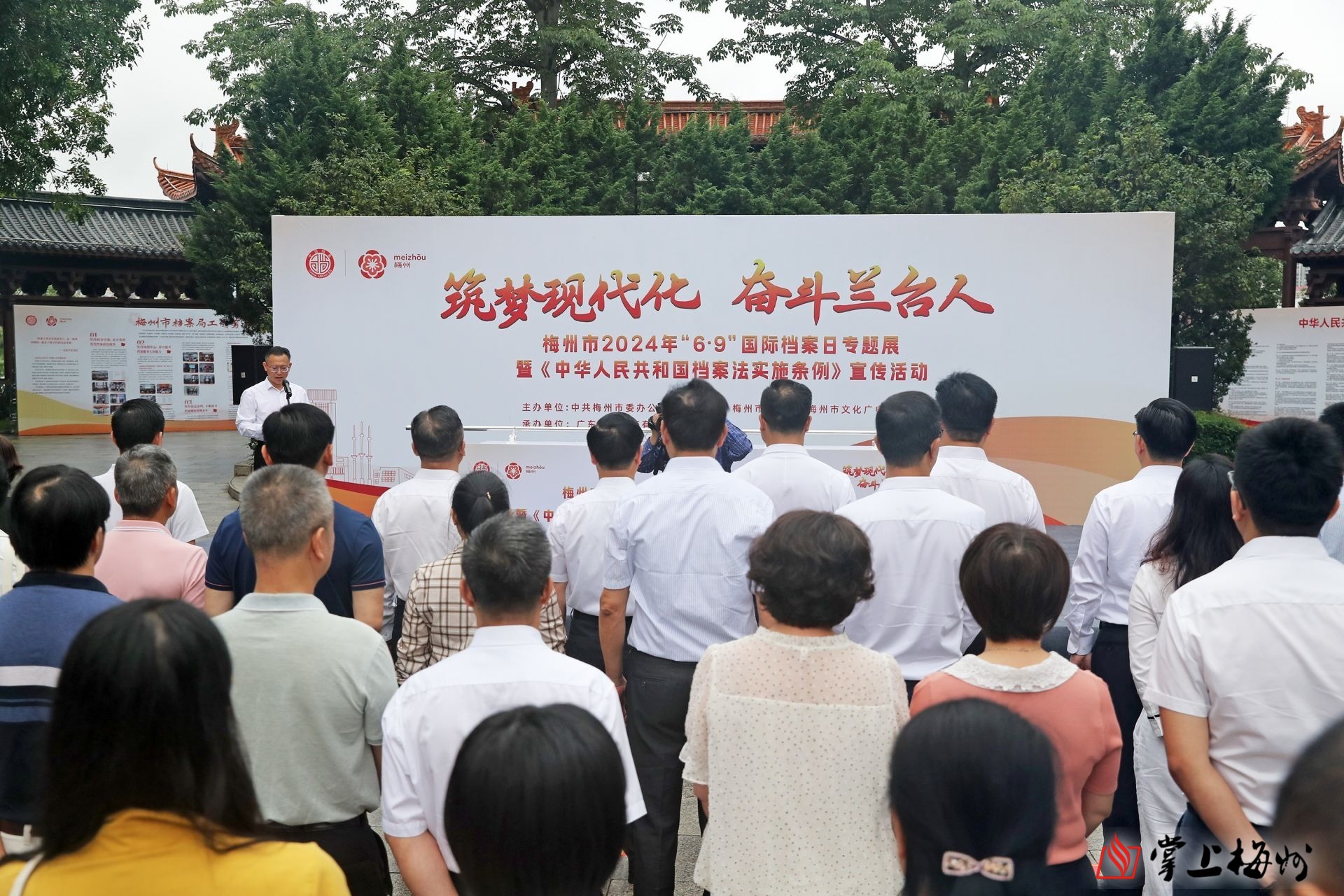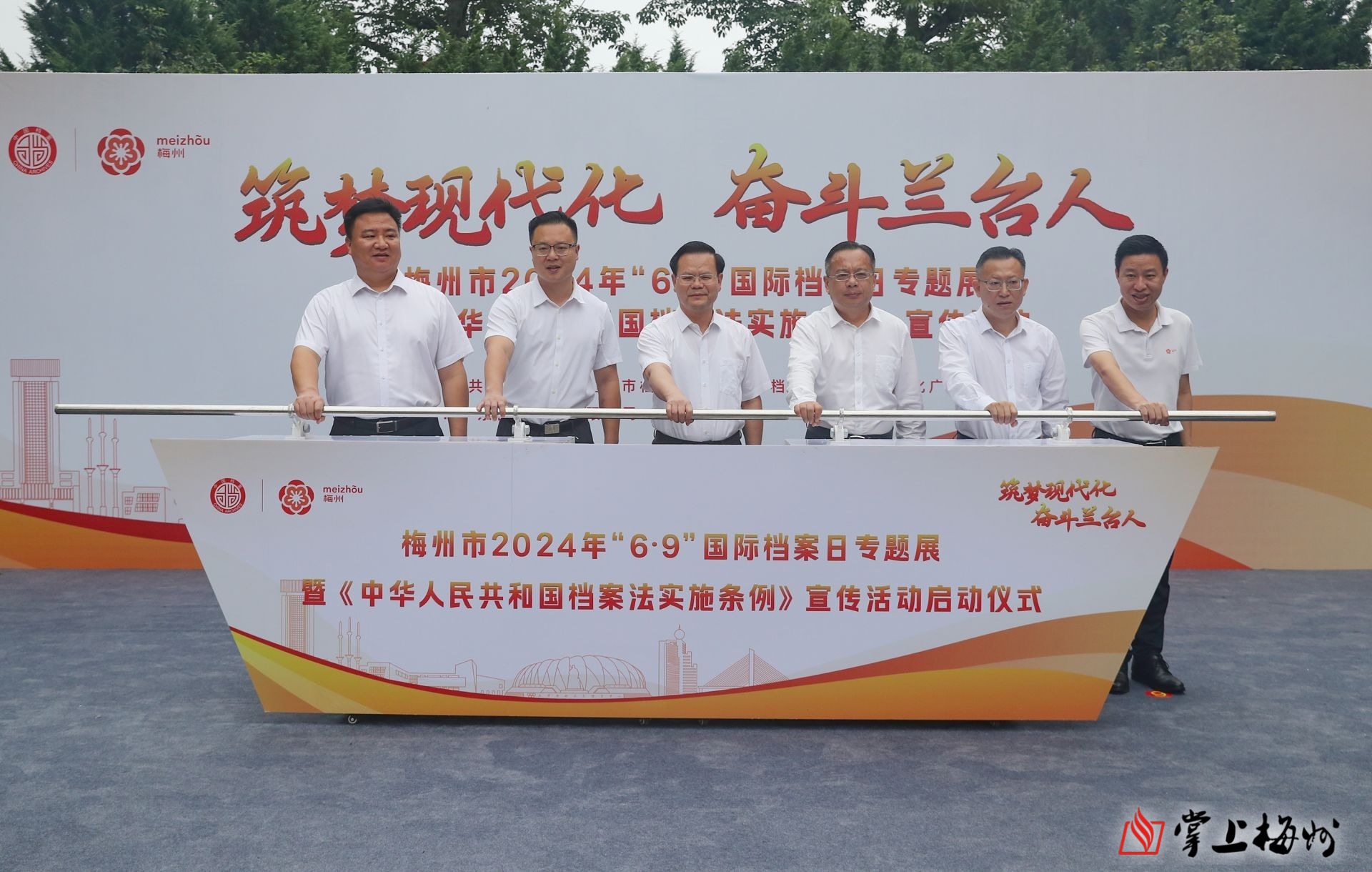掌上梅州訊 今年6月9日是第17個國際檔案日。6月6日上午,中共梅州市委辦公室(市檔案局)、市檔案館聯合市文化廣電旅遊局、廣東客都文旅有限公司在市劍英公園舉辦以“築夢現代化 奮鬥蘭台人”為主題的2024年“6·9”國際檔案日專題展暨《中華人民共和國檔案法實施條例》宣傳活動。市委常委、秘書長曾永祥,市委常委、副市長趙東參加活動。