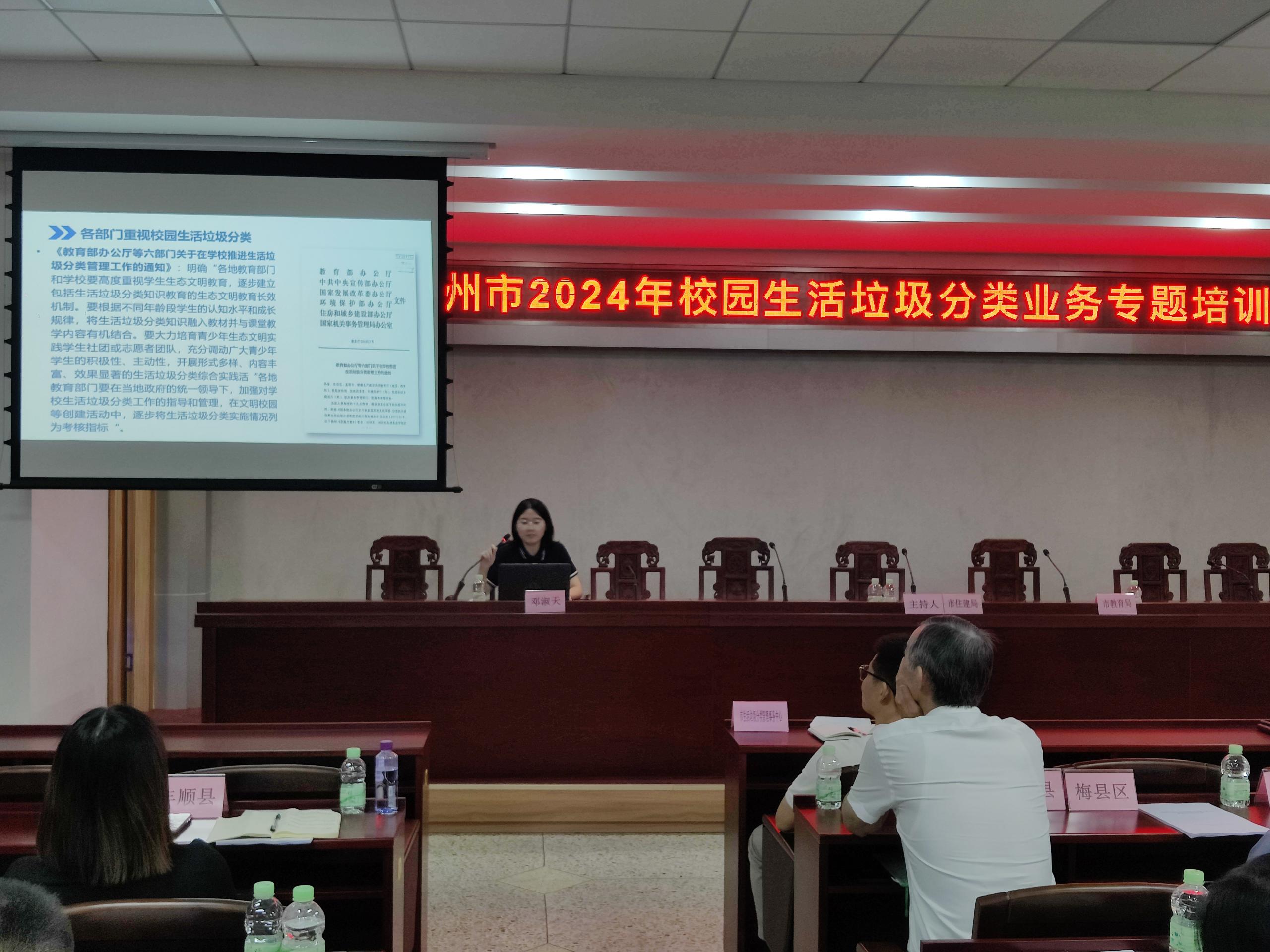 為深入貫徹習近平生態文明思想,紮實推進全市校園生活垃圾分類工作,進一步提升精細化管理水平,9月12日,市住房城鄉建設局、市教育局聯合召開2024年校園生活垃圾分類業務專題培訓會,邀請省生活垃圾分類技術研究中心專家到我市進行授課。市住房城鄉建設局、市教育局、市生活垃圾分類管理事務中心有關負責同誌,在梅高校、市直學校以及各縣(市、區)教育局、城區中小學校(含幼兒園)垃圾分類業務負責同誌共計120多人參加培訓。