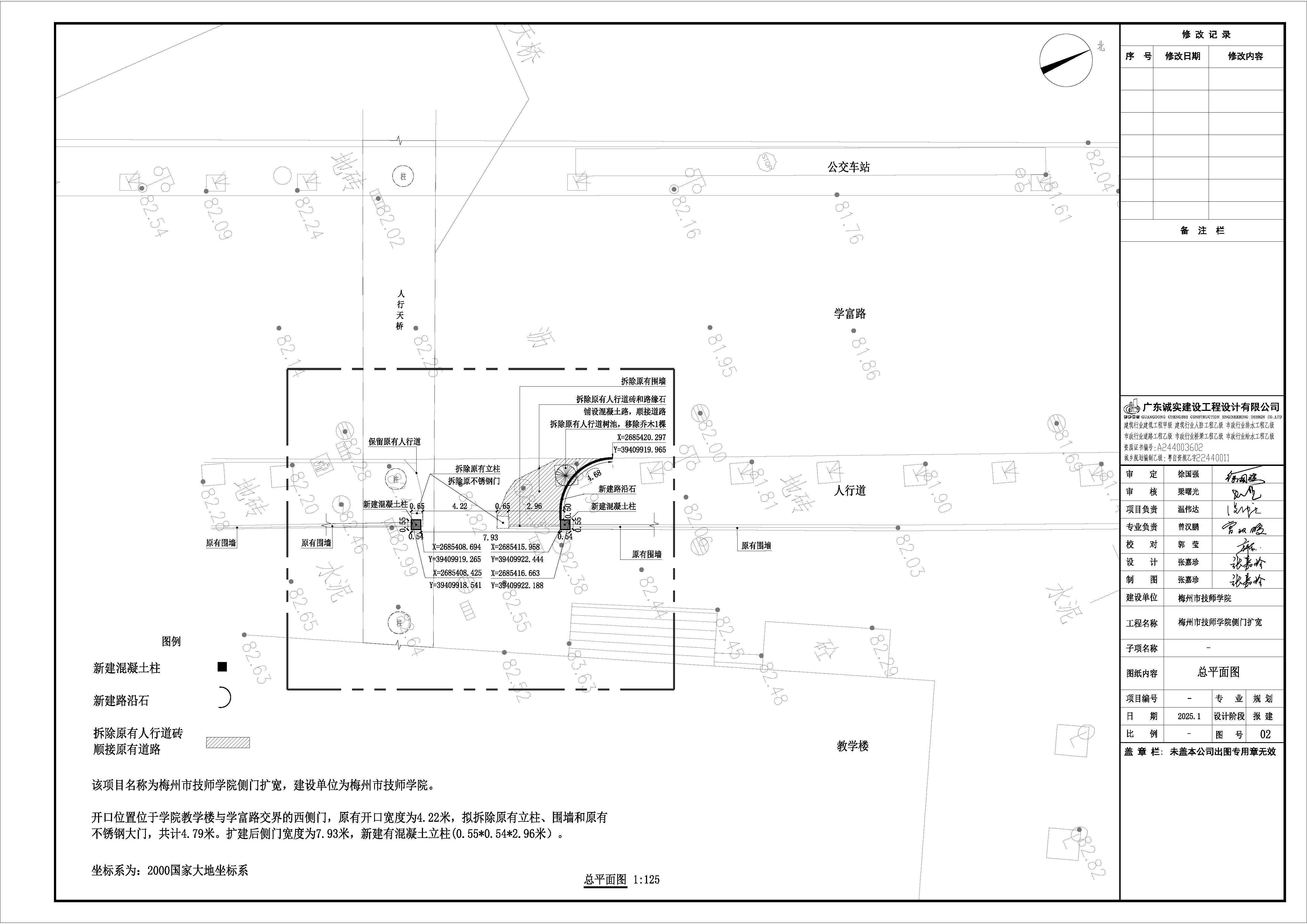 為保證學校門口交通安全,梅州市技師學院擬實施梅州市技師學院側門擴寬項目,開口寬度為7.93米,該項目位於梅江區學富路。如附圖所示。