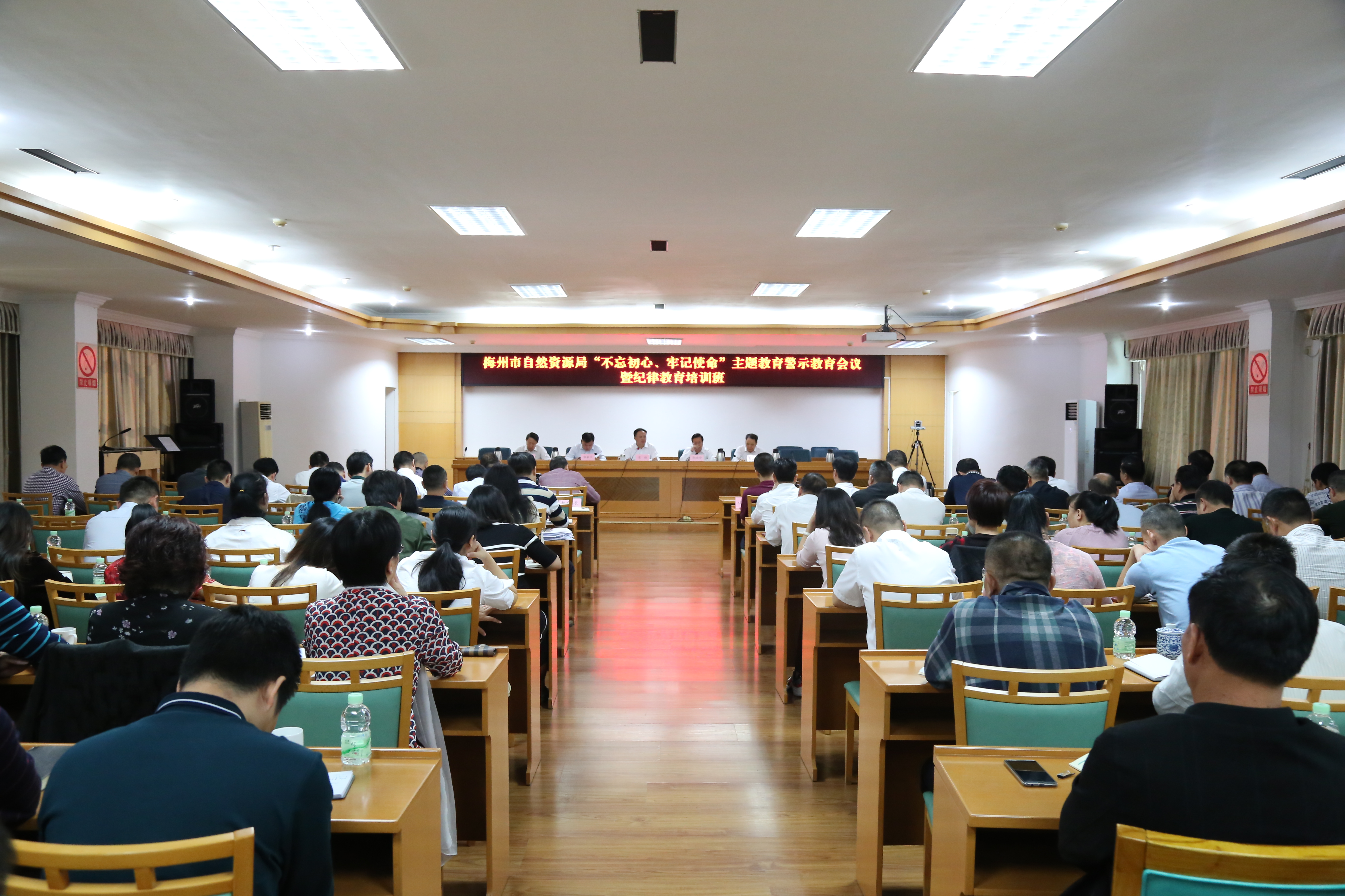 按照“不忘初心、牢記使命”主題教育和紀律教育學習月活動的部署安排,11月1日,市自然資源局在六樓會議室舉辦了“不忘初心、牢記使命”主題教育警示教育會議暨紀律教育培訓班。局黨組書記、局長梁維同誌出席會議並作警示教育專題輔導、講主題教育專題黨課,市委主題教育第八指導組派員列席會議。會議由局黨組成員、副局長郭琪營同誌主持,機關全體黨員幹部、局屬單位班子成員、各黨支部書記和委員以及各縣(市)自然資源局、梅縣分局班子成員約180人參加了會議。