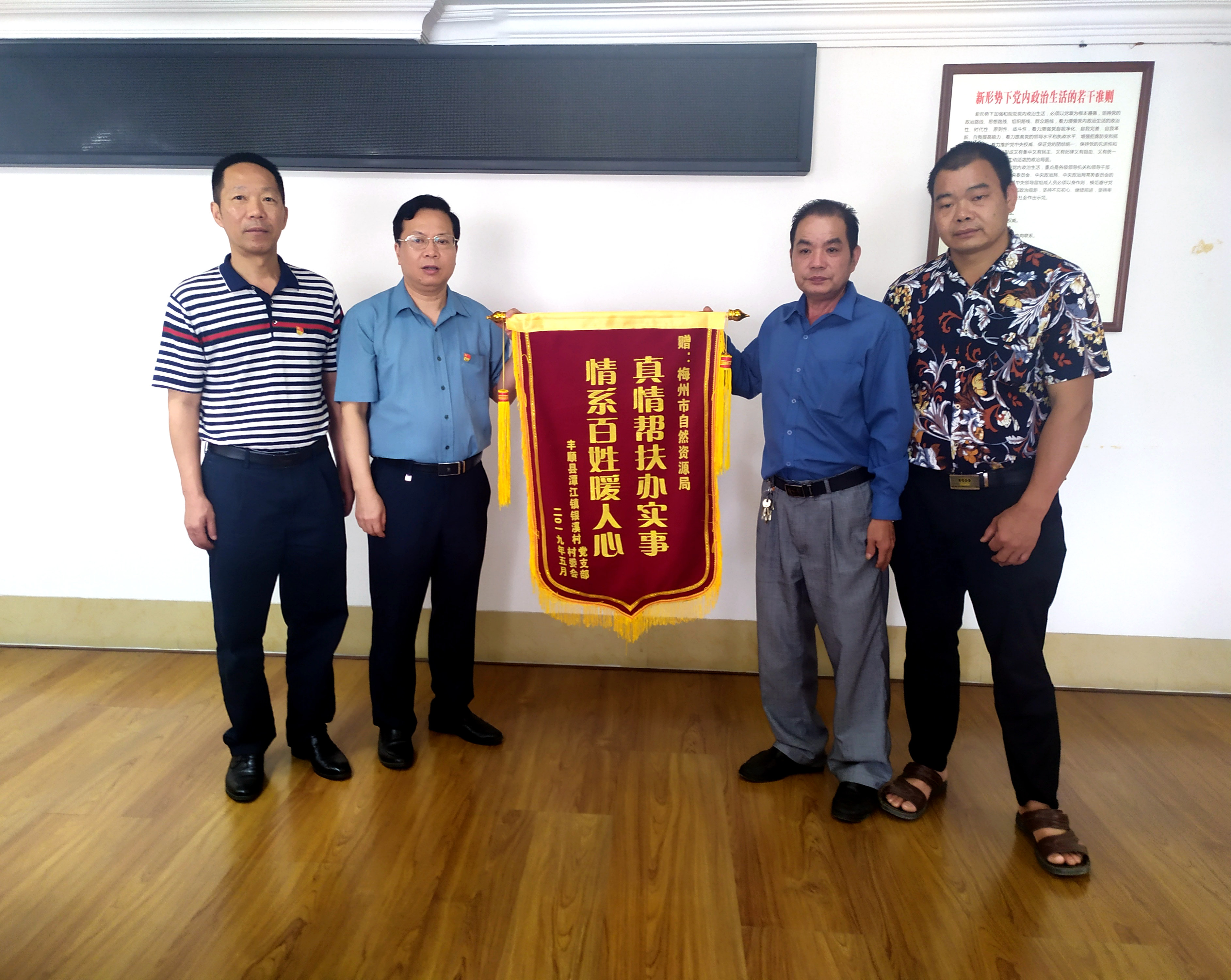 根據我市脫貧攻堅工作有關安排,原由市自然資源局(原市城鄉規劃局)幫扶的省定貧困村豐順縣潭江鎮銀溪村調整由中國郵政集團公司梅州市分公司幫扶。為感謝我局對該村脫貧攻堅事業作出的貢獻,5月16日上午,銀溪村兩委幹部專程來到市自然資源局送上錦旗和感謝信,並歡送駐村幹部返回我局。