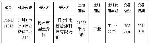 梅州市人民政府門戶網站 梅州市自然資源局 土地交易 2011年梅州市國有土地使用權出讓結果公示12