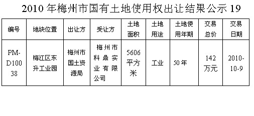 梅州市人民政府門戶網站 梅州市自然資源局 土地交易 2010年梅州市國有土地使用權出讓結果公示19