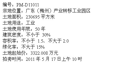 梅州市國有土地使用權公開拍賣交易信息PM-D11011