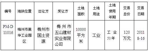 梅州市人民政府門戶網站 梅州市自然資源局 土地交易 2011年梅州市國有土地使用權出讓結果公示13