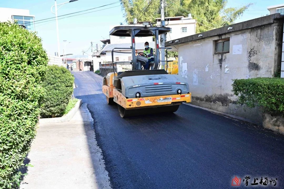 平遠縣大柘鎮超竹村豐光路,施工車輛正在鋪設瀝青。