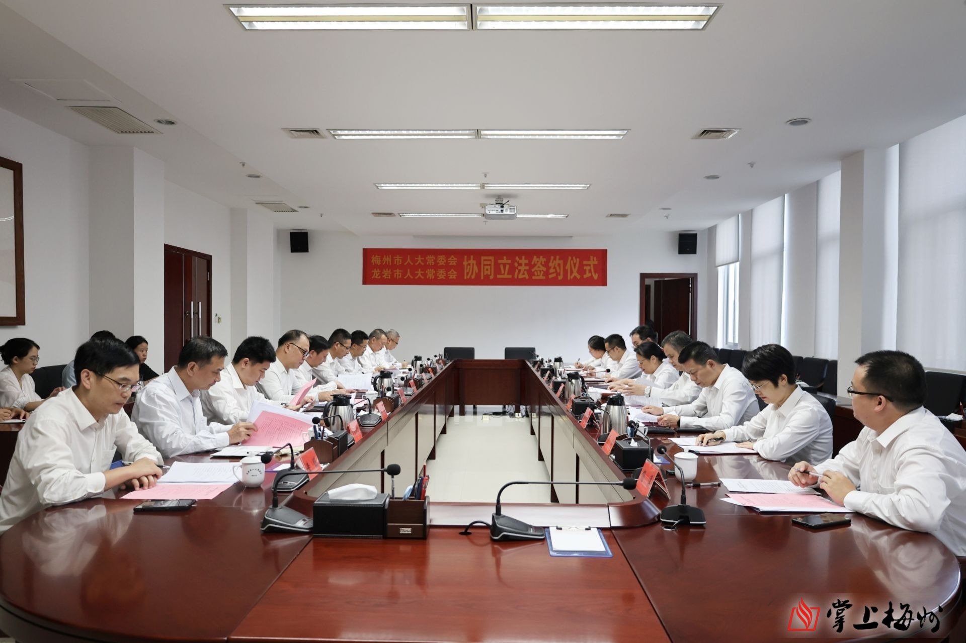 2024年,市人大常委會還開創我省設區的市跨省區域協同立法先河。為深刻吸取“6·16”特大暴雨災害教訓,保障人民群眾生命財產安全,市人大常委會迅速行動,增列暴雨災害預警與響應立法項目。及時研究落實黨的二十屆三中全會關於“探索區域協同立法”的部署要求,立足梅州龍岩地緣相近、山水相連,有共同的立法文化背景、現實需要這一實際,主動與福建省龍岩市人大常委會溝通聯係,達成協同立法共識,簽訂合作協議,通過協同調研、協同立項、協同審議等開展合作,為全省推進設區的市跨省區域協同立法先行先試、探索經驗。條例草案已於去年11月經市人大常委會初次審議,各項工作正在有條不紊推進。